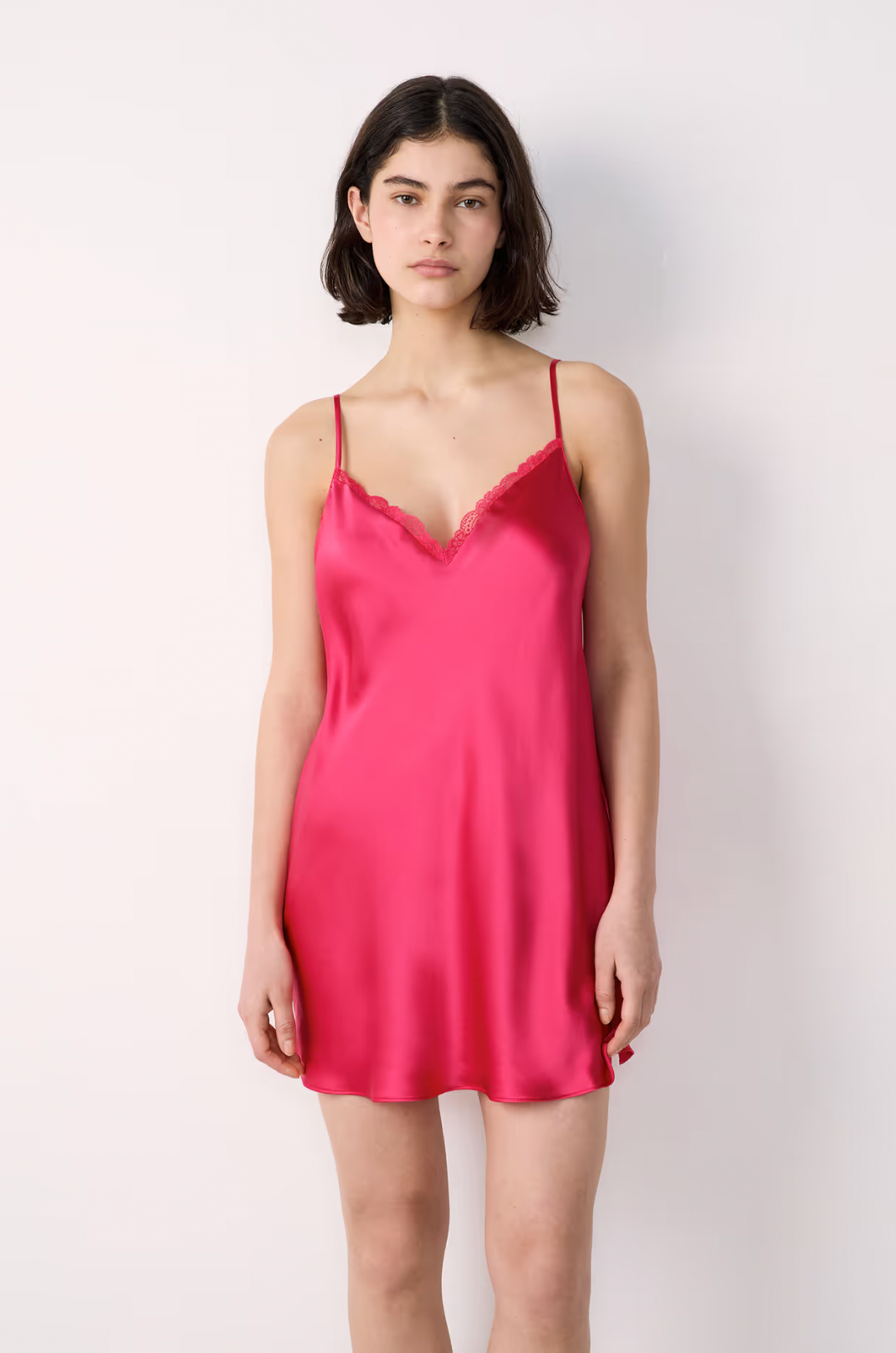 Etam Silk Nightdress with Lace Neckline, $, available at Etam