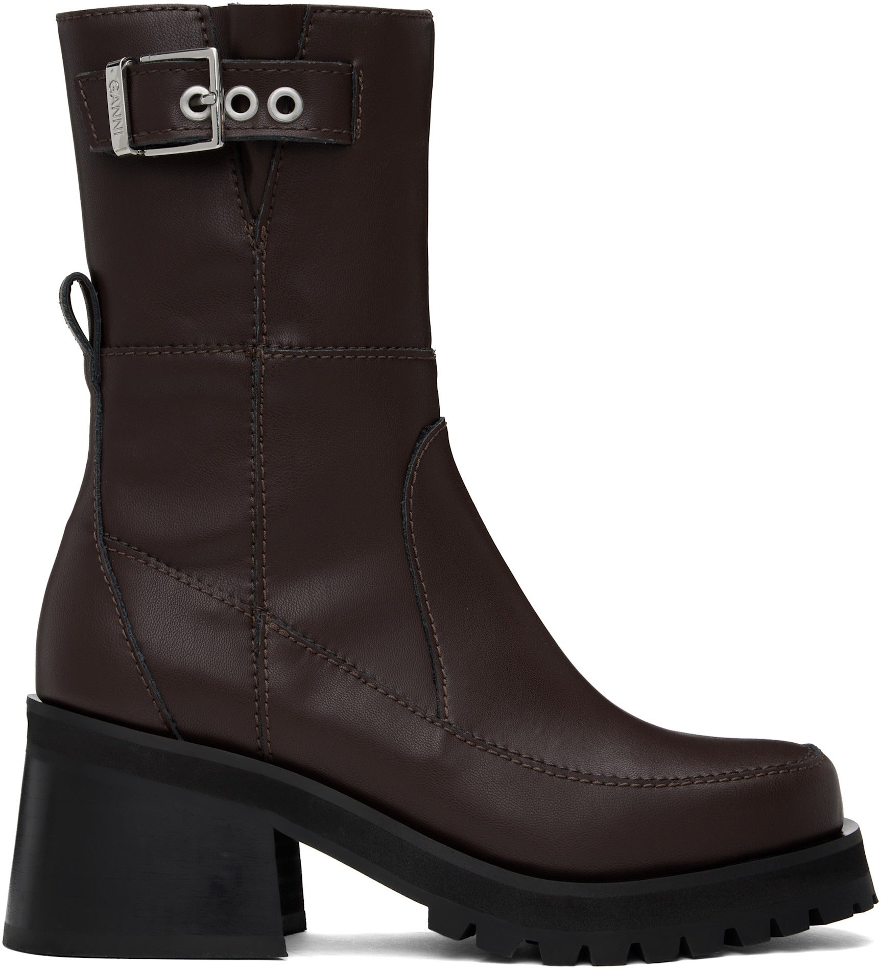 Ganni Brown Feminine Buckle Platform Boots, $, available at SSENSE