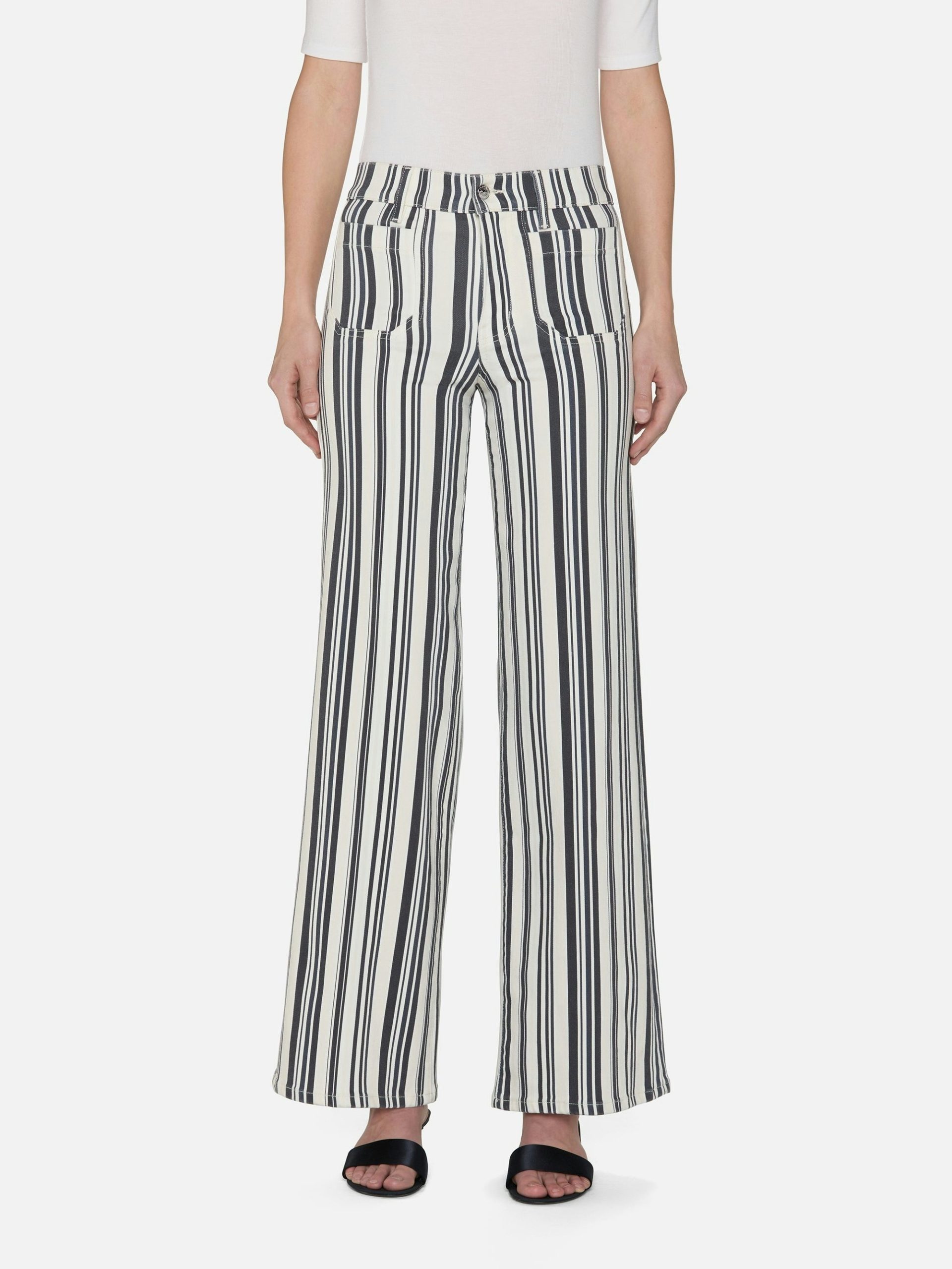 Frame Le Slim Palazzo Modernist Pocket in Navy Stripe, $, available at Frame