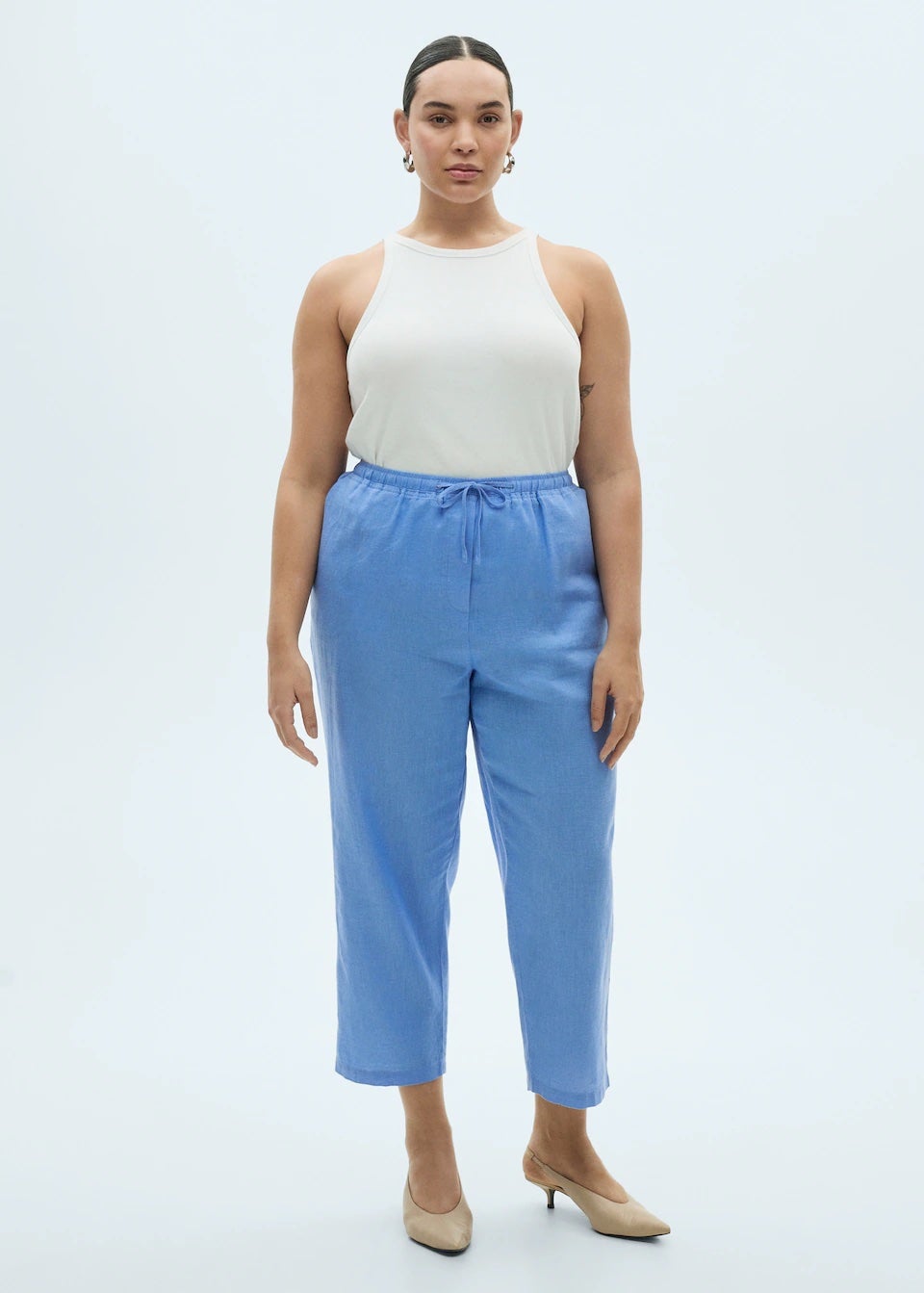Mango Straight Linen-Blend Trousers, $, available at Mango