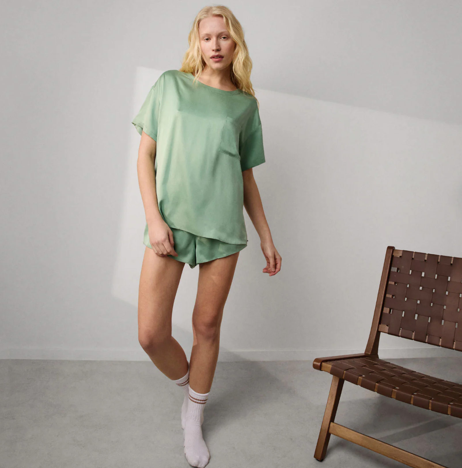 Lunya Washable Silk Tee Short Set, $, available at Lunya