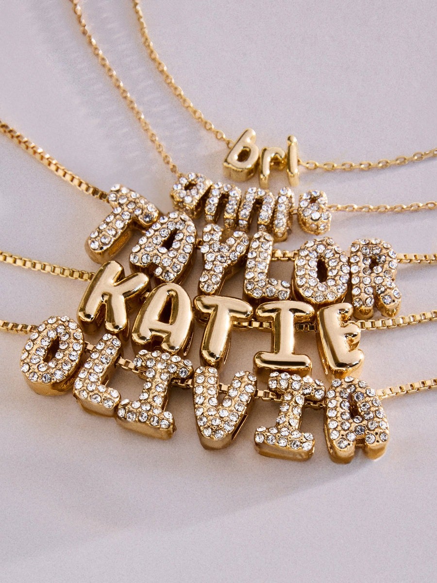 BaubleBar Custom Bubble Letter Necklace, $, available at BaubleBar