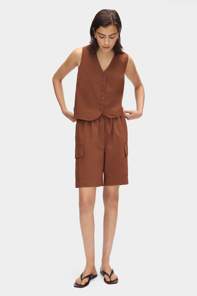 These short sets are made for peak summer ease — think crisp poplins, soft linens, and playful prints that read part resort, part pajamas. From tailored vests to oversized button-downs, they’re the kind of outfits that look considered but feel like a breeze.
