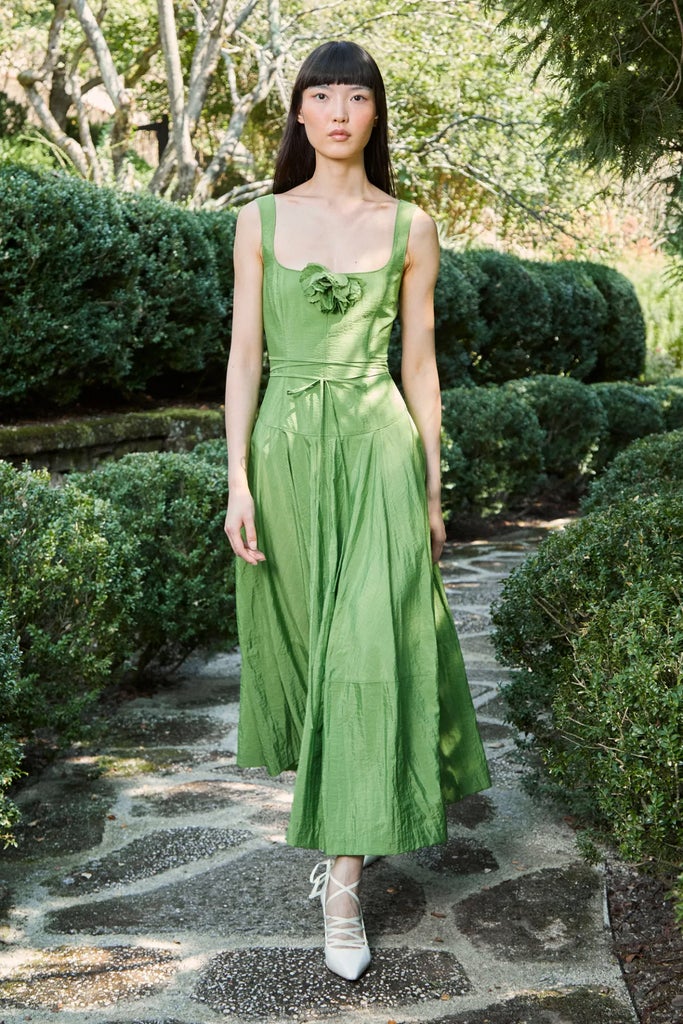 Whether sparked by Dubai’s pistachio chocolate obsession or runway momentum, this playful green is everywhere. The distinct shade (and all of its brighter and more muted variations) is fueling a summer dress trend that’s equally fun for daytime picnics and evening events. It also plays well with Mocha Mousse for a more understated, earthy effect.