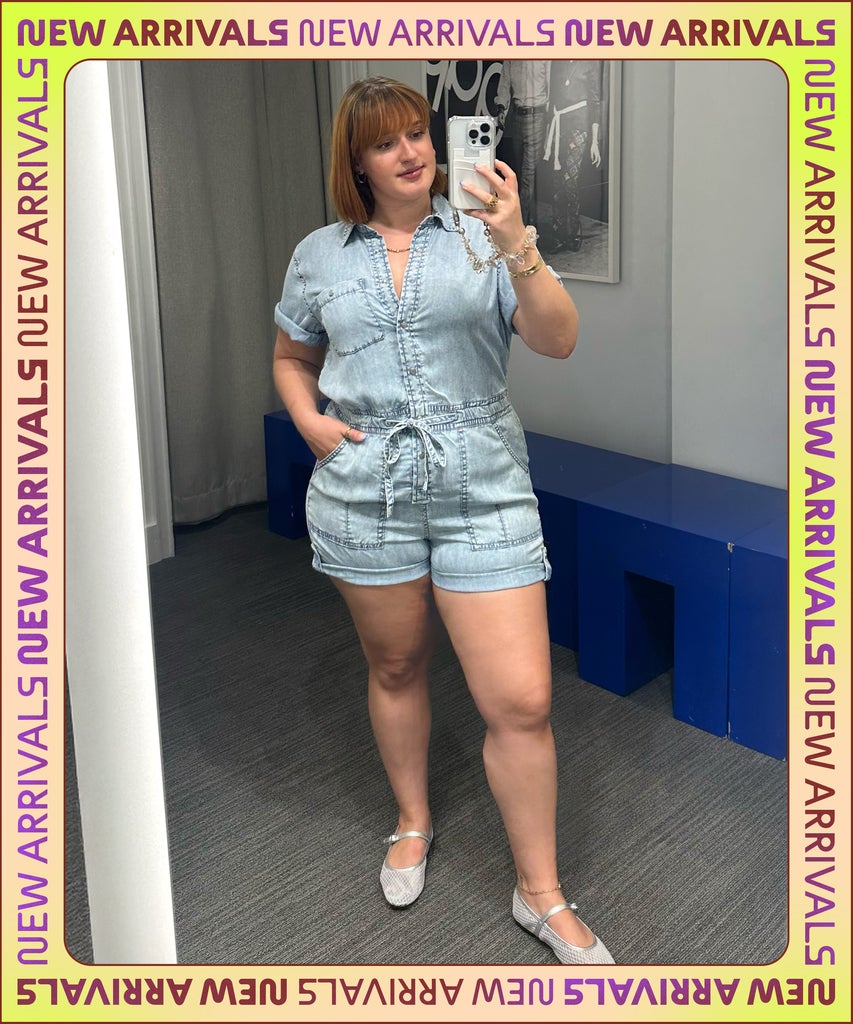 The Draped Denim Romper (pictured at the top) was a big winner for me — especially when sized down for a less baggy fit. It’s (you guessed it) soft and stretchy, plus the snap buttons and elasticized waist let you reveal or relax as much as you’d like. I didn’t feel constricted at all, making it a great pick for long summer festival days.