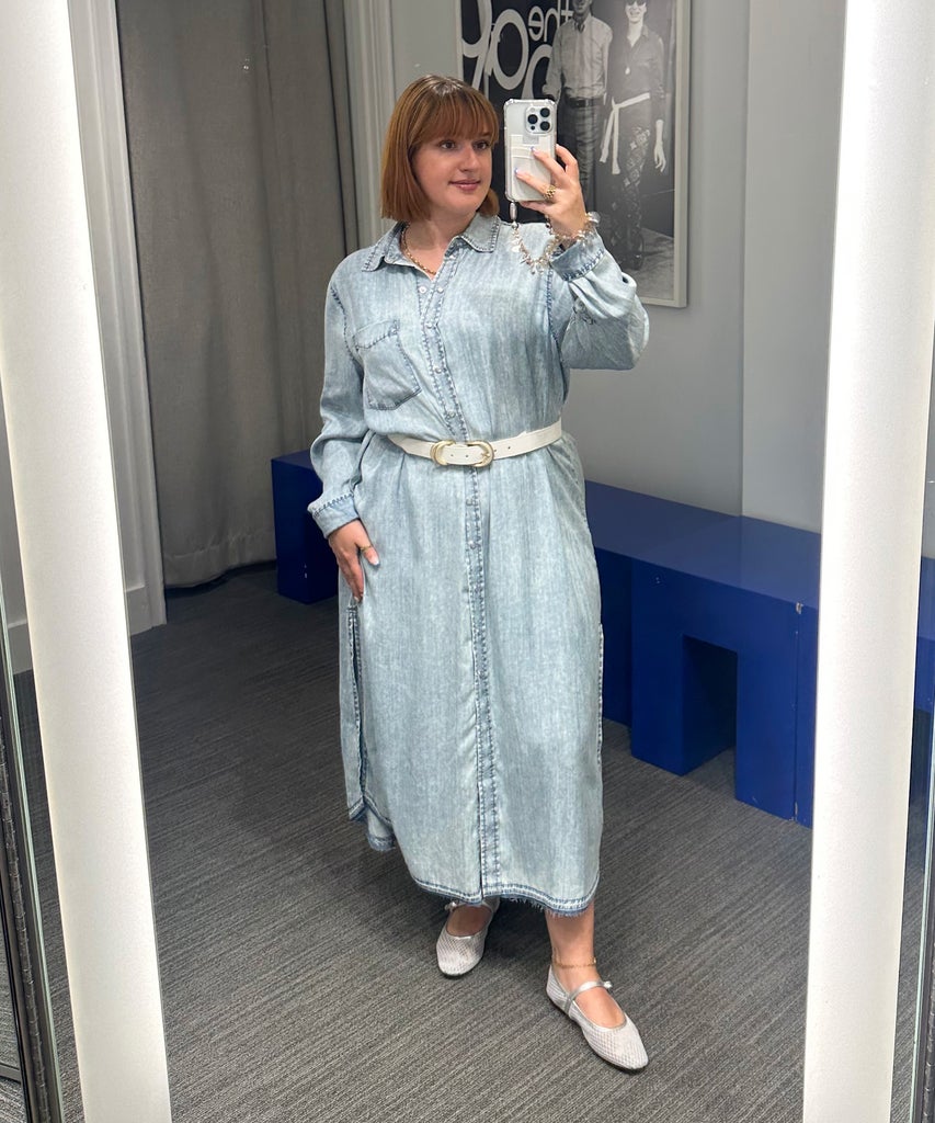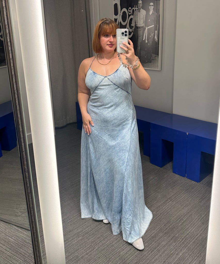 I immediately felt like Britney Spears à la her 2001 American Music Awards all-denim look in the maxi slip denim dress. Again, I wish this style was offered in a petite length, but I can’t overlook how comfortable and lightweight it felt, or how much of a statement it makes.