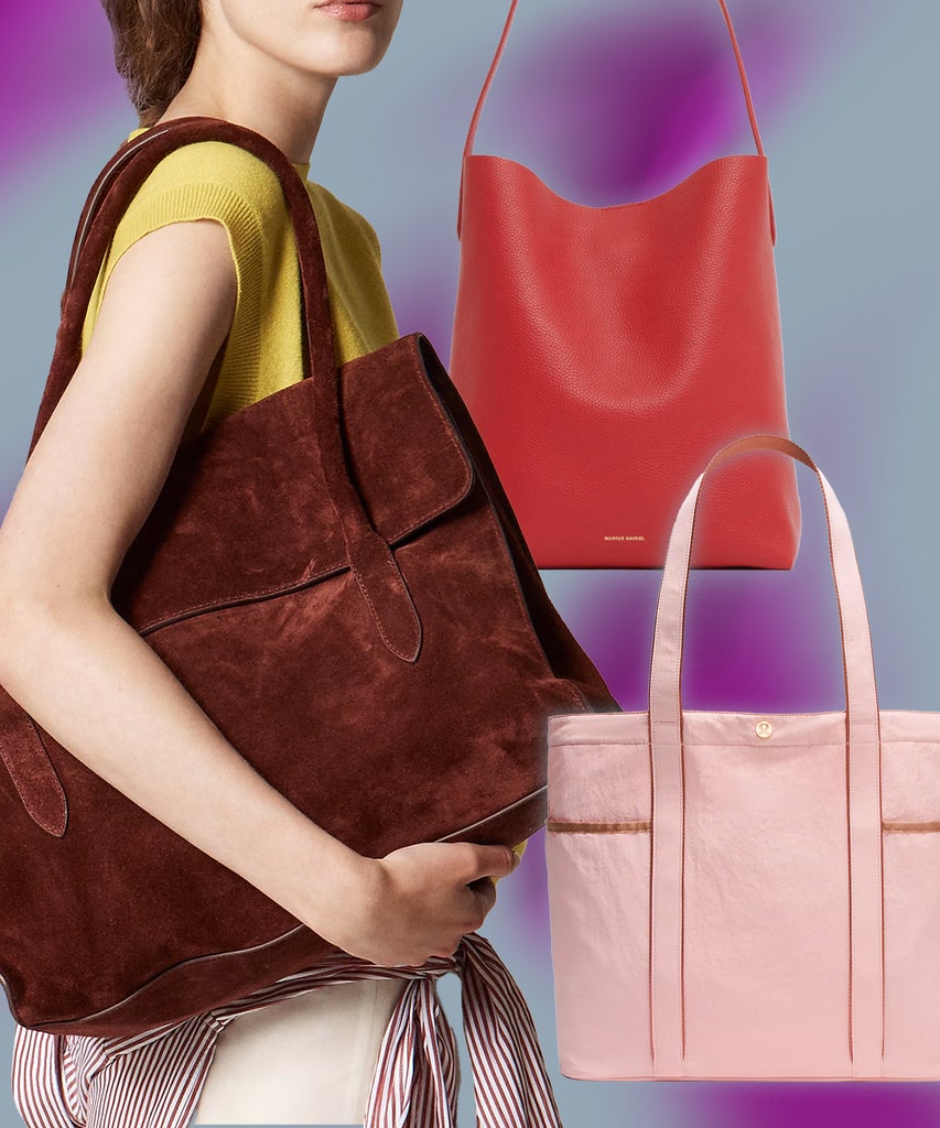 The vibe: utilitarian and low-key. These totes, crafted from nylon and canvas, are the ultimate anything-and-everything schleppers. Whether you’re looking for a minimalist option (peep Banana Republic’s new arrival), a playful print (see: Baggu’s signature XL market bag), or a custom style with cheeky embroidery or a timeless monogram, these are the sturdy go-tos for work, grocery hauls, the beach, travel — wherever!