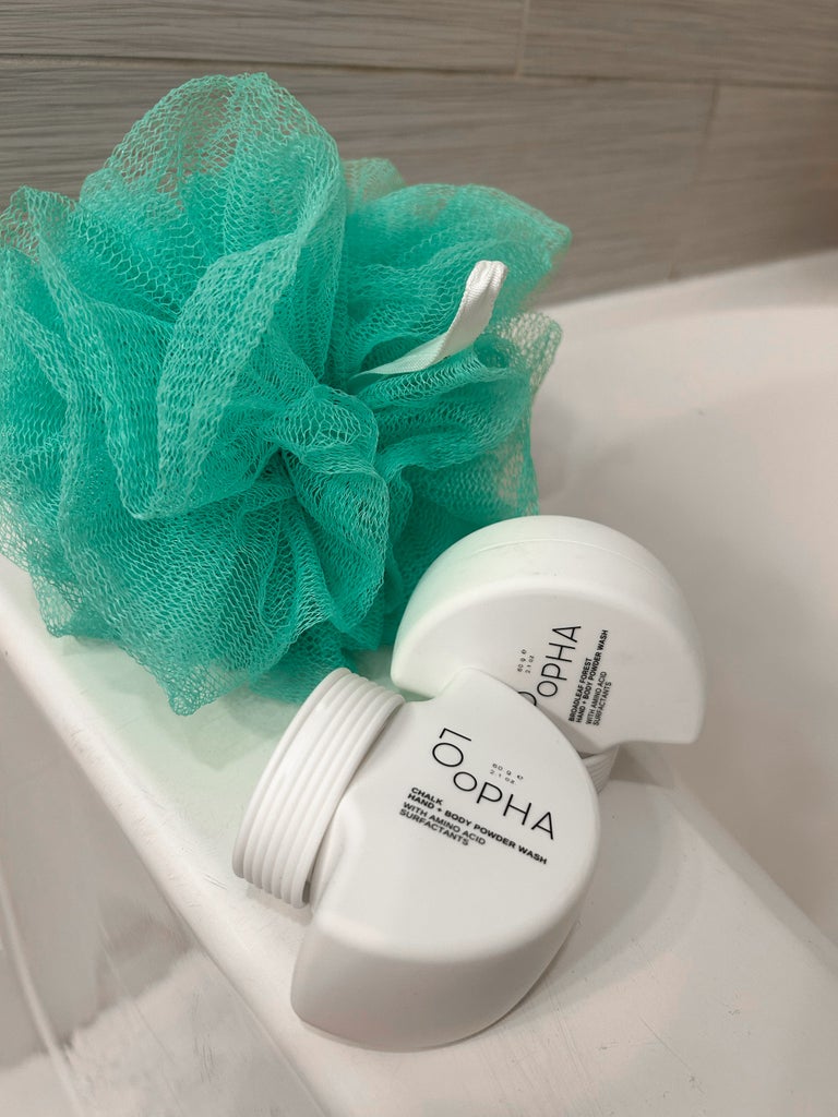 One of the biggest learning curves was figuring out how much product to use. With traditional body wash, I know from years of experience that a little more than a quarter-sized dollop is enough. With the powder version, I had to experiment to find the right amount for my entire bod. The LoOPHA bottle has a squeeze dispenser, and at first, I underestimated how much I’d need. After some trial and error, I learned that a generous dusting lathers up quite well — especially for a 100% sulfate-free formula.