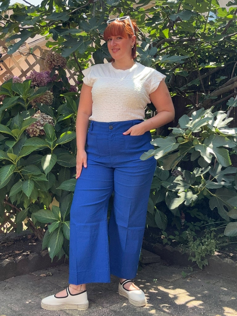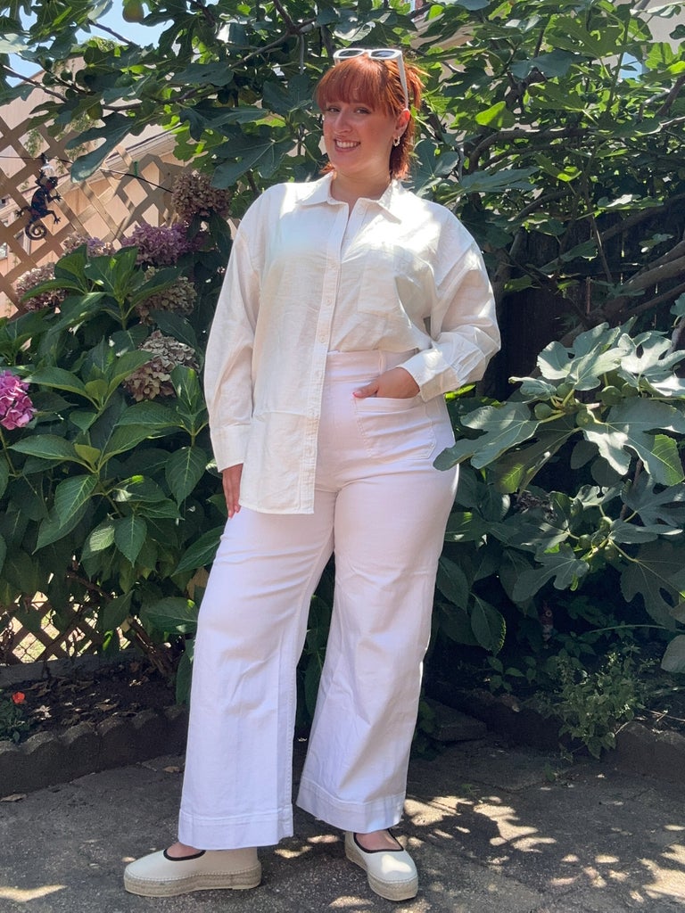I paired the Colette jeans with the top-rated Linen Bennet Buttondown Shirt (4.6 stars, 429 reviews), which also comes in a timeless cotton version (4.5 stars, 1,415 reviews), for an office-ready look. As an elevated alternative to a standard T-shirt, the Smocked Muscle Top (4.5 stars, 414 reviews) offers a more casual, off-duty vibe.
