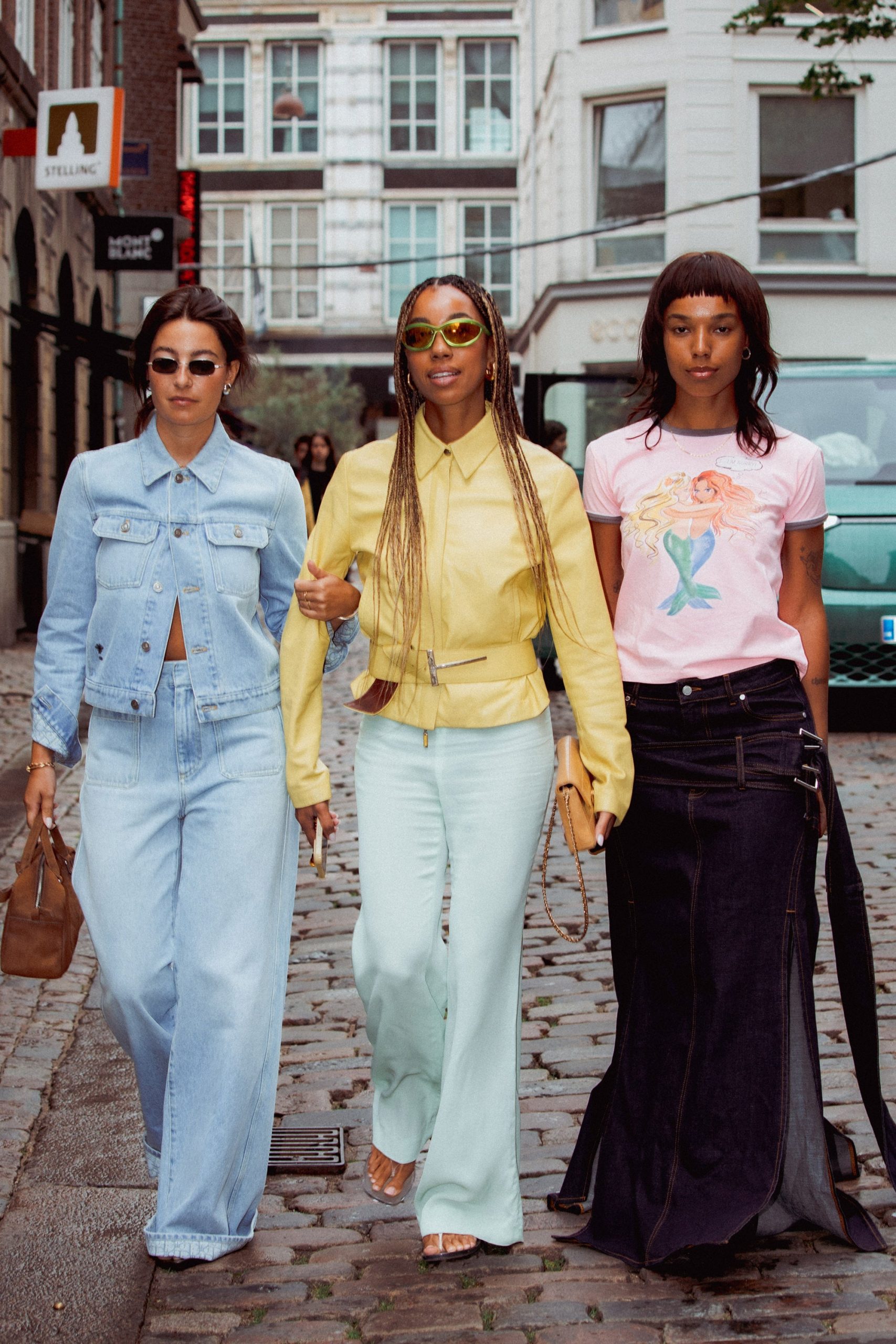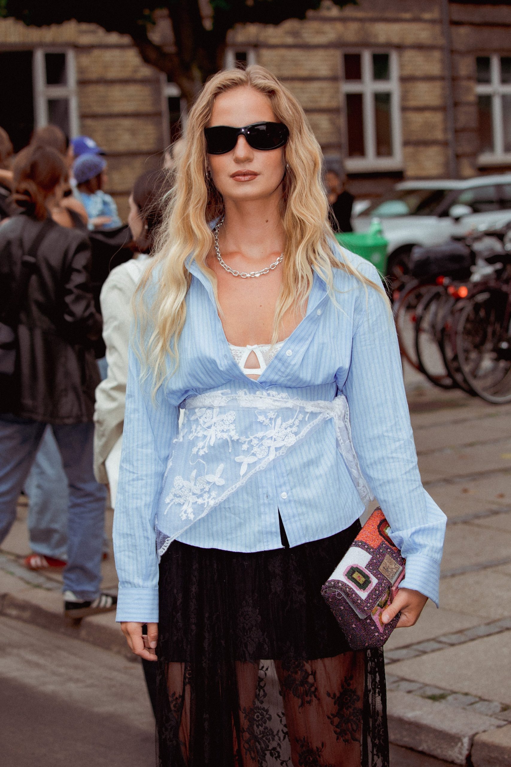 Sunny blonde bobs are everywhere in Copenhagen this week. Zoë Irwin, editorial hair color ambassador for L’Oréal Professionnel Paris, calls this shade “atomic blonde” — a natural root that seamlessly blends into brighter mid-lengths and ends. Photographed by Emma Rahmani.Cornrows and braided styles are dominating on and off the runway this Copenhagen Fashion Week. Photographed by Emma Rahmani.Add interest to long hair with a silk scarf, just like this stylish guest.