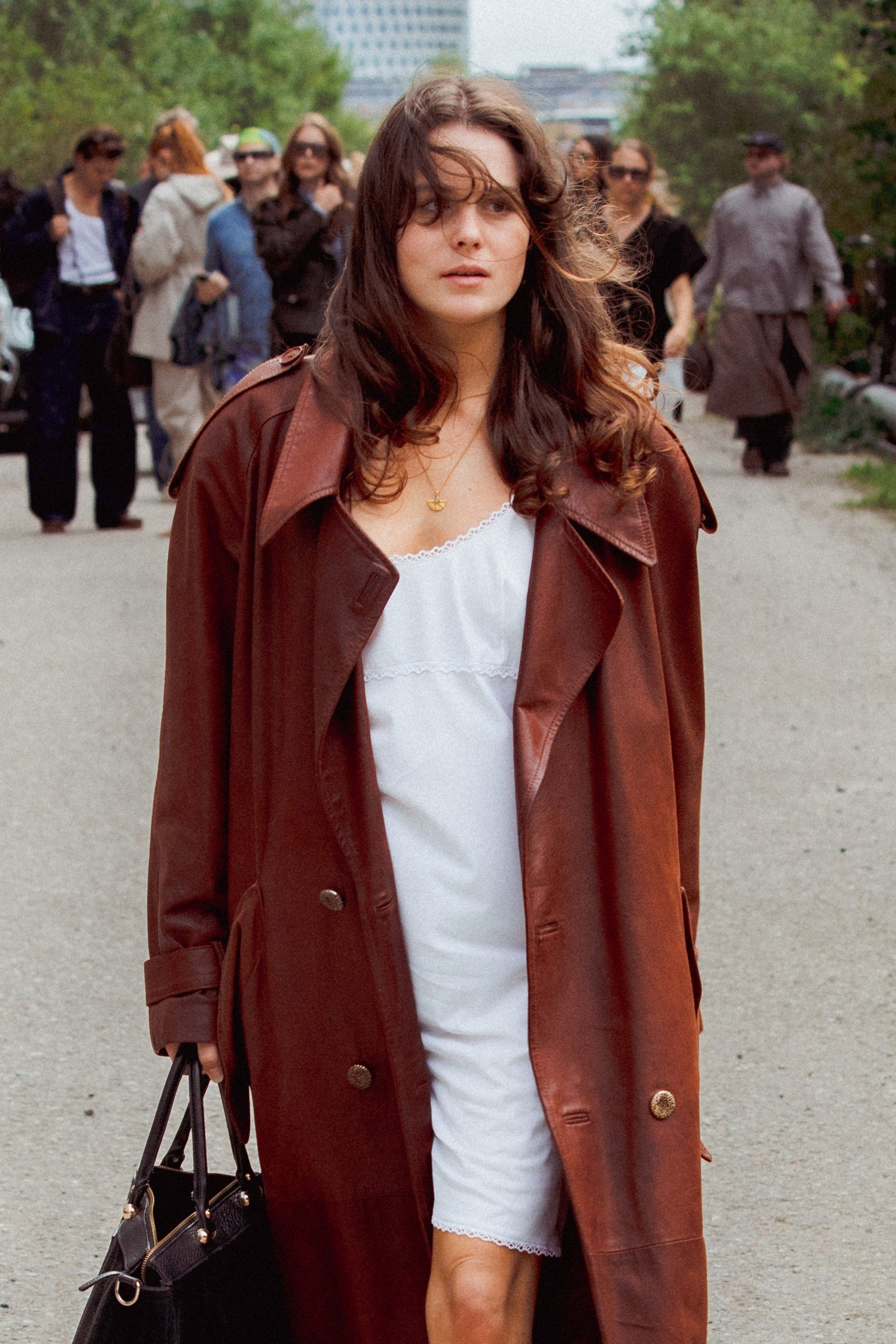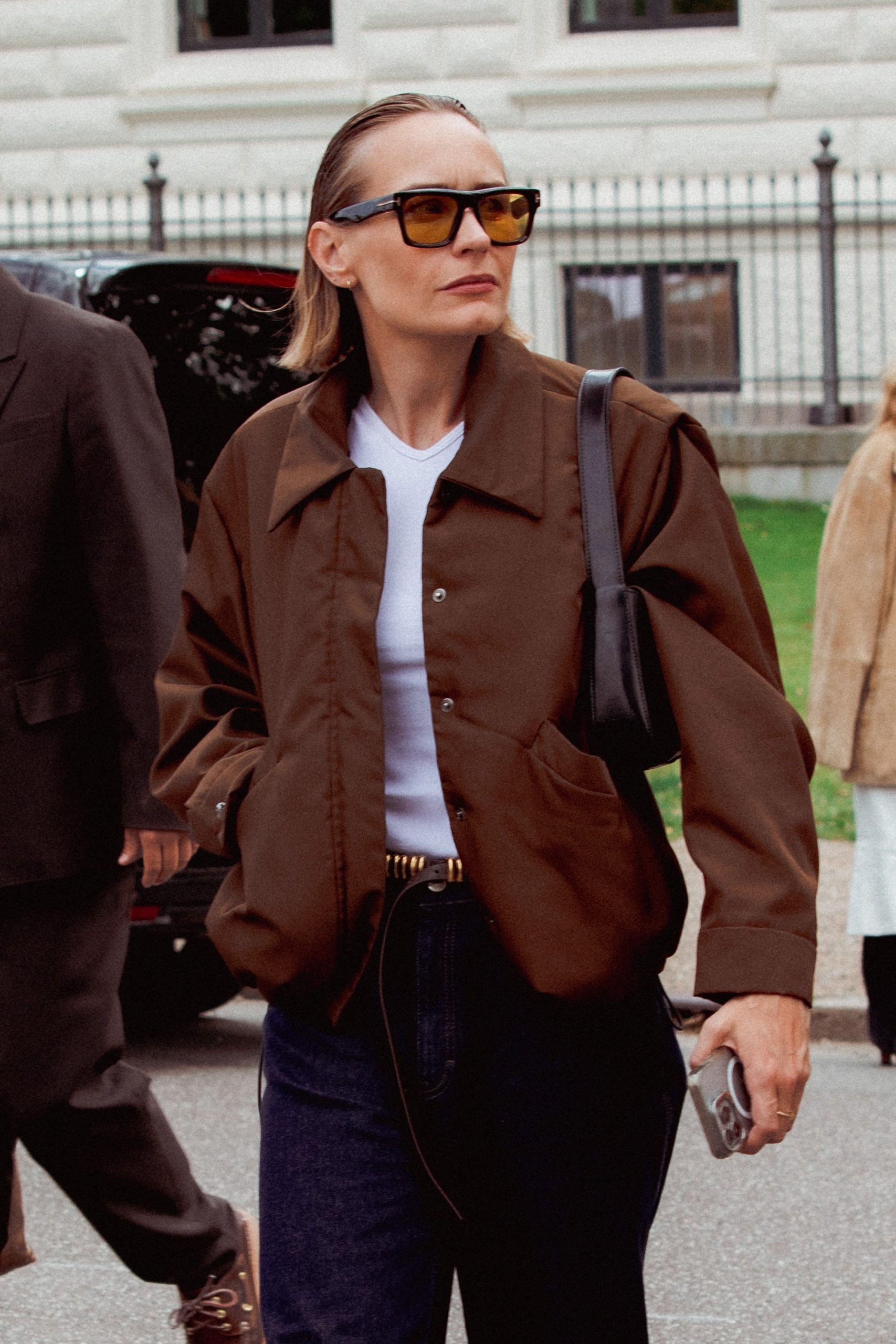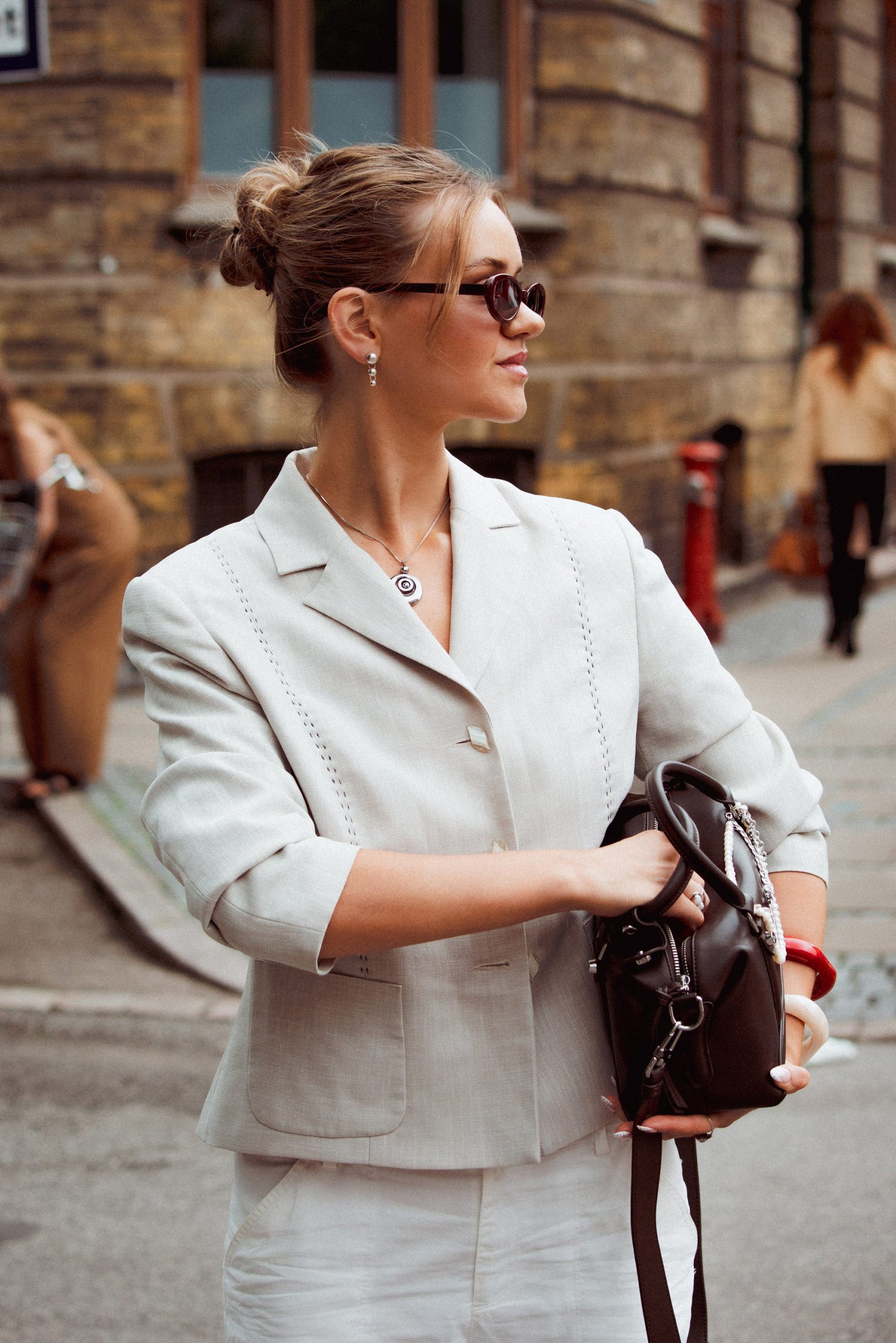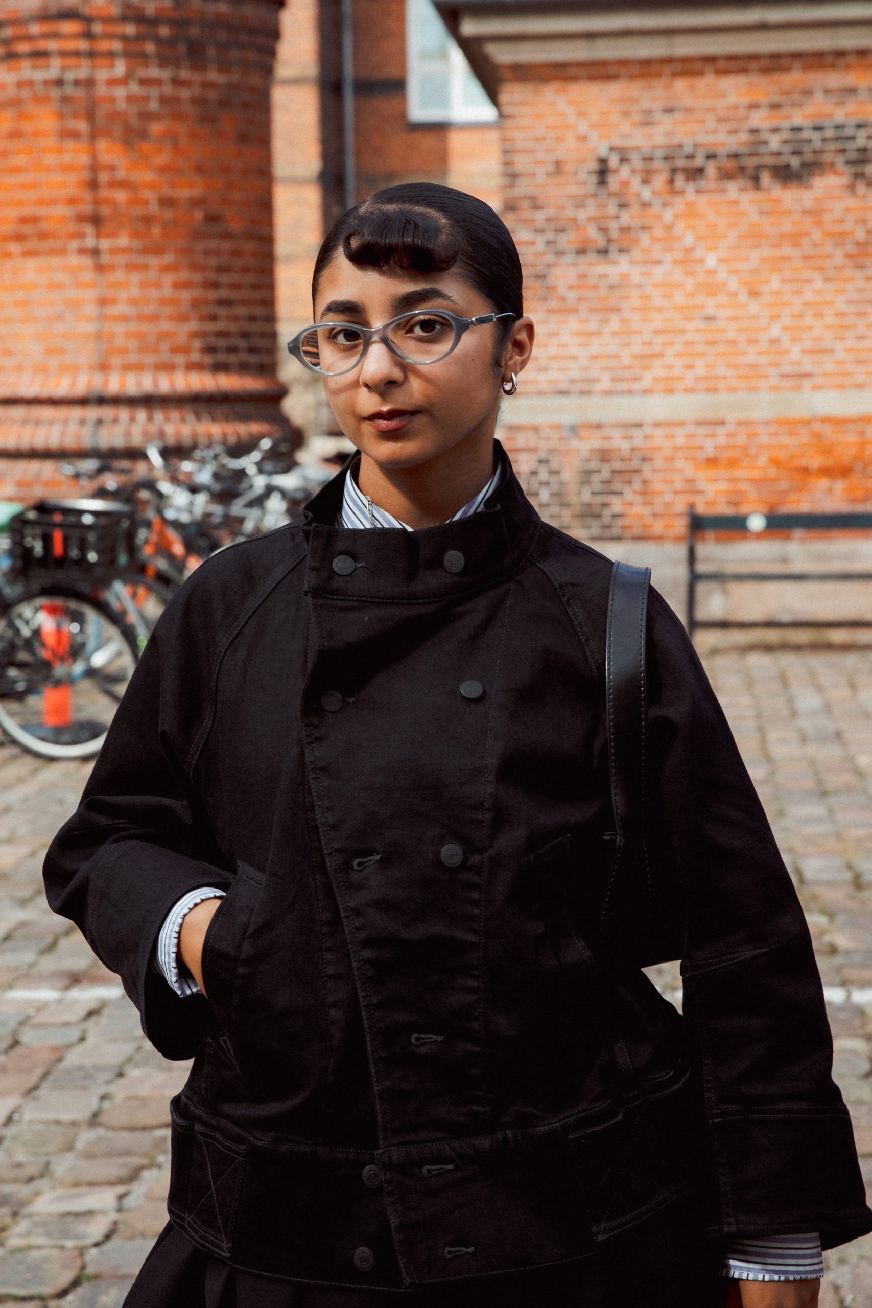 The slicked-back bun is making a comeback in Copenhagen this week, but with a more relaxed vibe than before. Start with a simple, low, loose bun, and pin random sections close to the head using bobby pins. Finish by pulling out a few face-framing strands.