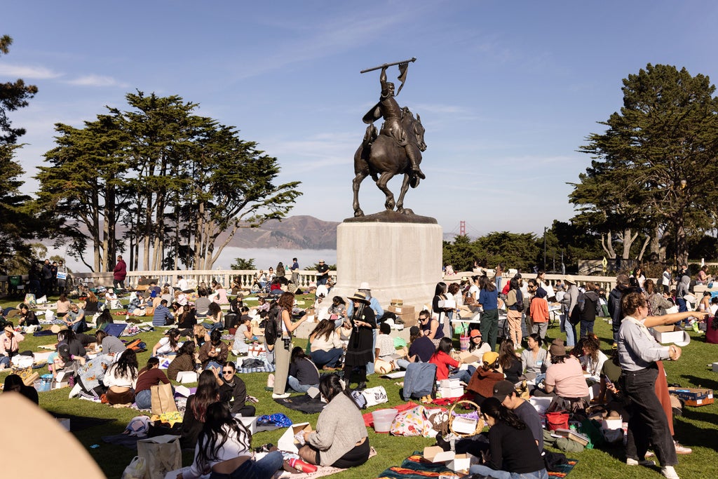What started out with Elisa Sunga, 35, from San Francisco, creating Cake Picnic for 15 friends in April last year, turned into an event that tours and draws in hundreds of strangers. “I’ve loved seeing people come together around cake from all over the world,” Sunga tells Refinery29. “It’s such a fun and unique event where the focus of the event is cake, friendships, and new memories. We are all connected by our love for cakes and are intentionally choosing joy and whimsy. I think we need a lot more of that in our everyday life.” Sunga’s cake tour has five more stops this year, with New York and LA next, and in 2026 will visit 15 cities globally.