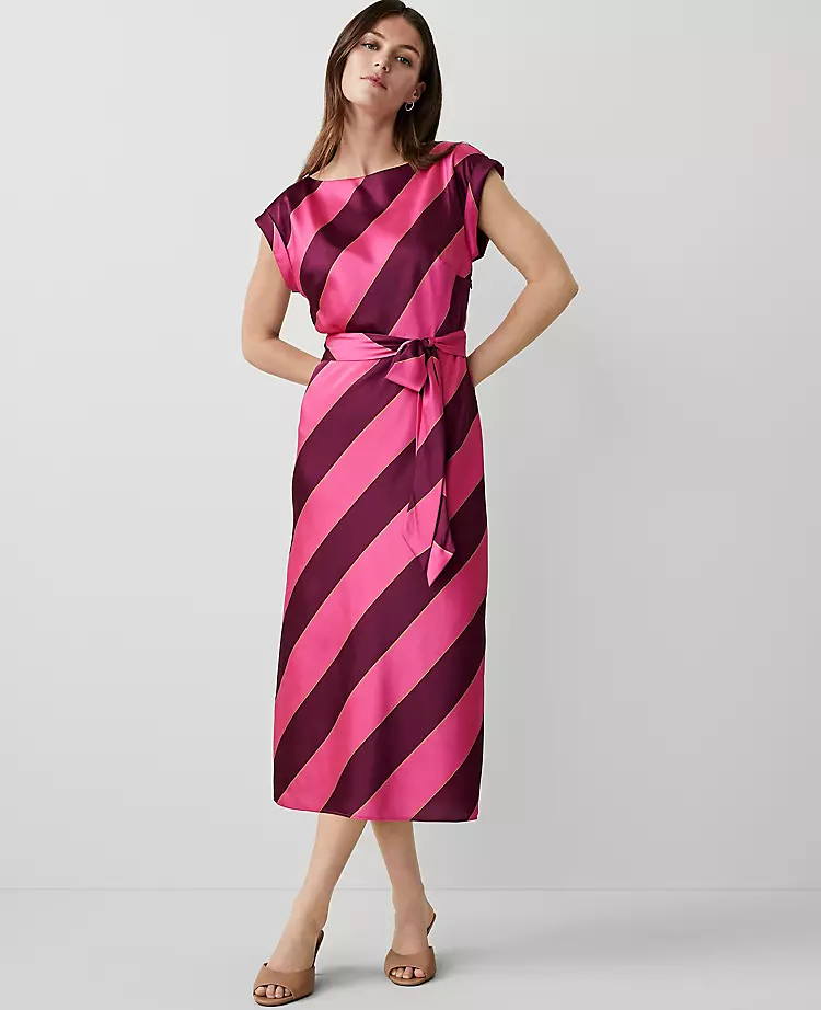 Ann Taylor Striped Boatneck Flare Midi Dress, $, available at Ann Taylor
