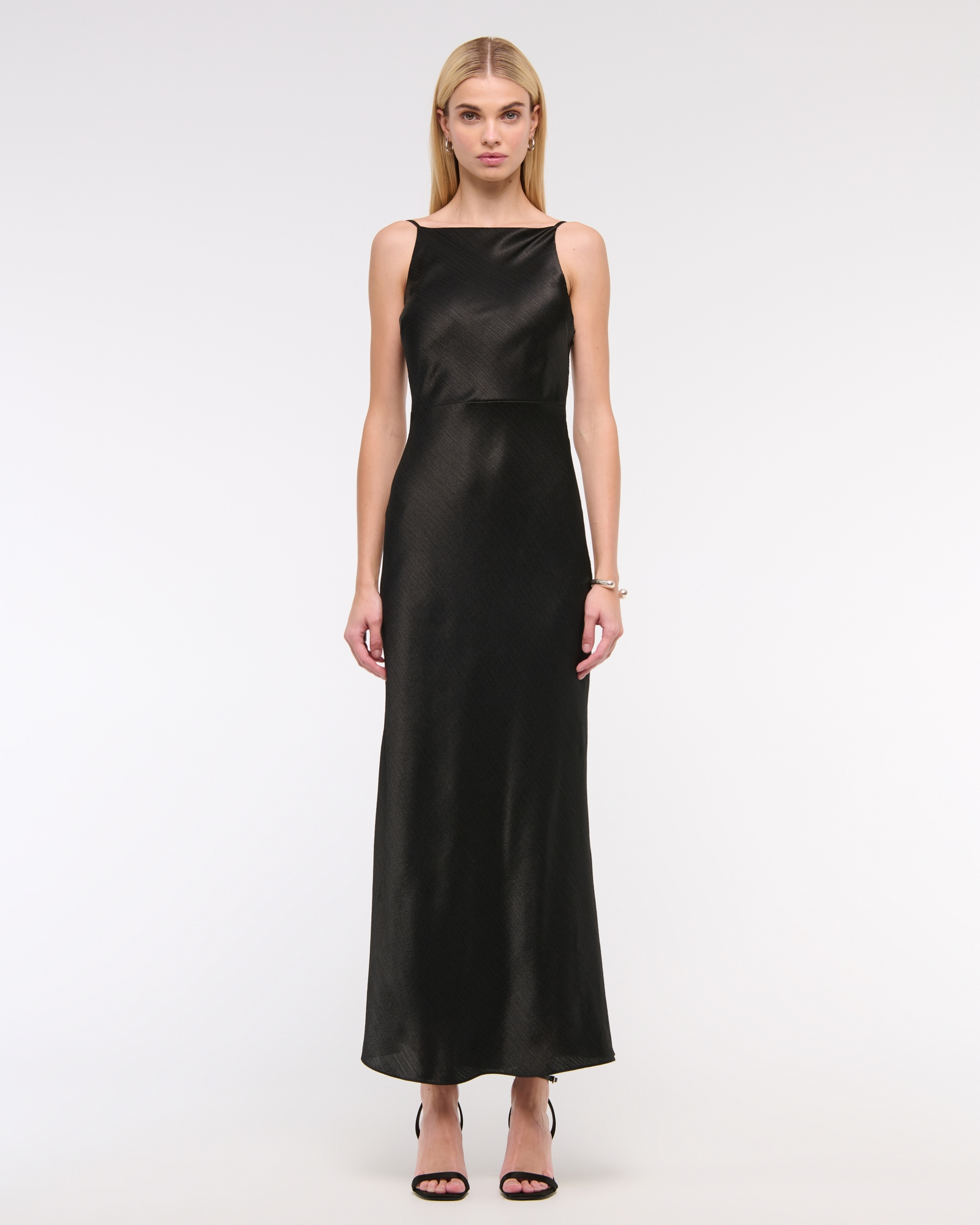 Abercrombie & Fitch High-Neck Crinkle Satin Maxi Dress, $, available at Abercrombie & Fitch