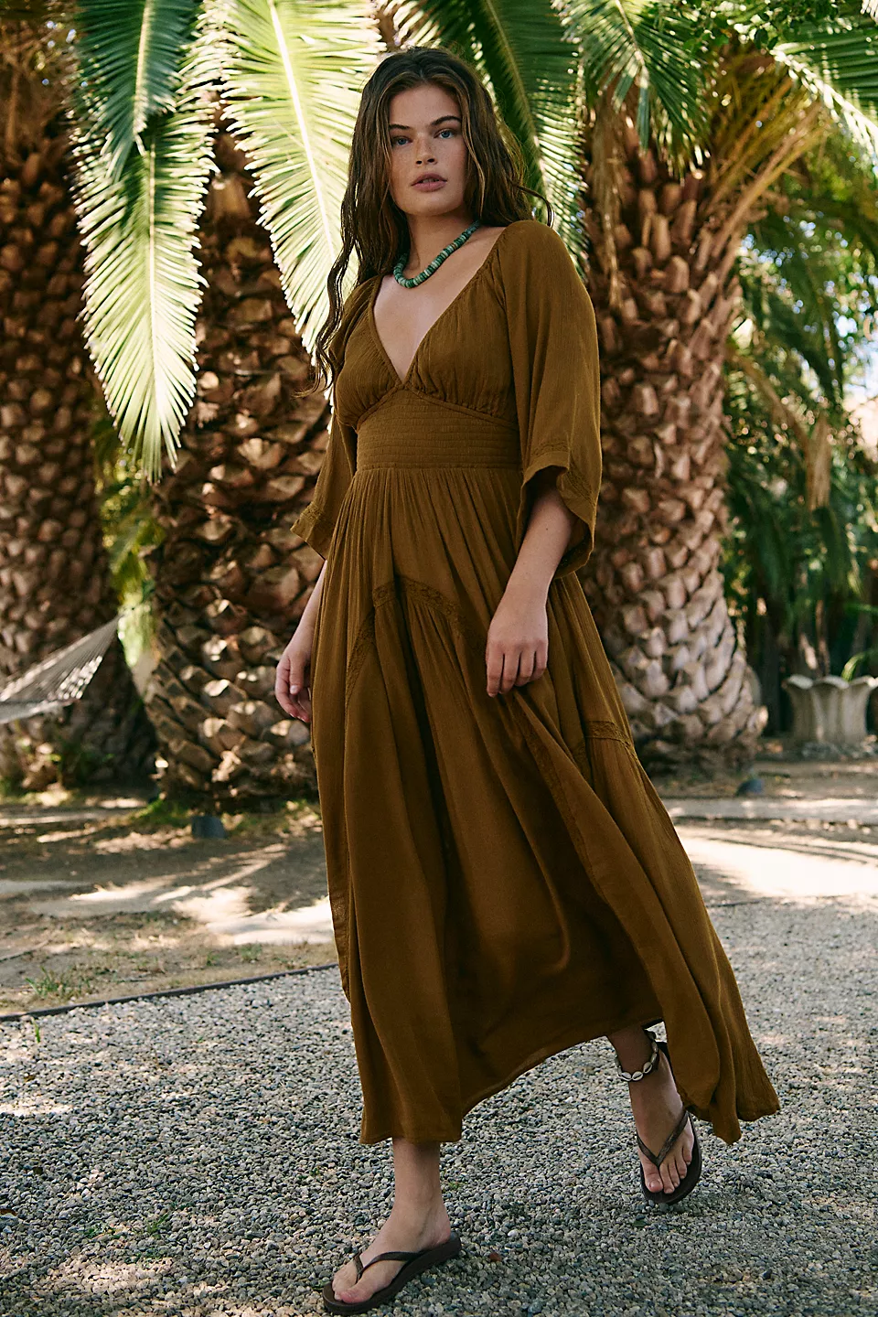 Moon River Bubble Sleeve Smocked Midi Dress, $, available at Tuckernuck