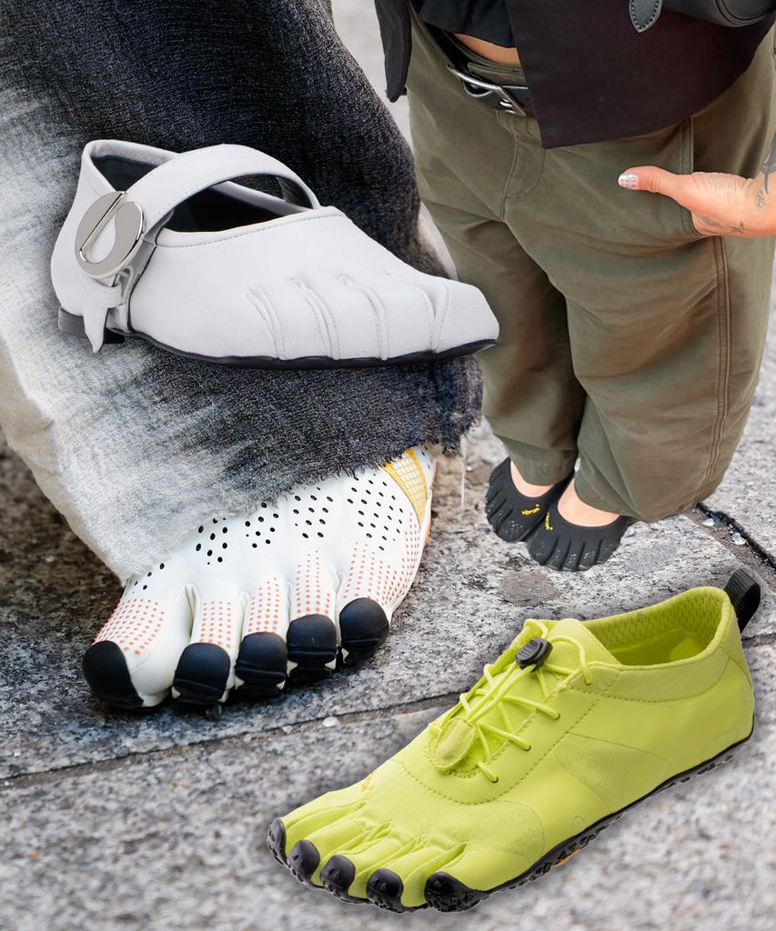 Although striking in appearance, the collection was overshadowed by an unprecedented global health event, and any hopes that the trend would take off fell flat. A full five years later, however, five-toe shoes have rather successfully infiltrated the sneaker space, piggybacking off the success of Maison Margiela’s iconic Tabis. Labels like Nike and Coperni released their own iterations, drip-feeding consumers with toe-forward shoe styles until the digits of fashion’s elite were under a full-scale siege. Now, interest in Vibram FiveFingers is the highest it’s ever been. According to Lyst, the freaky shoes saw an unprecedented 110% spike in sales between April and June of 2025, securing them a leading role on summer mood boards.