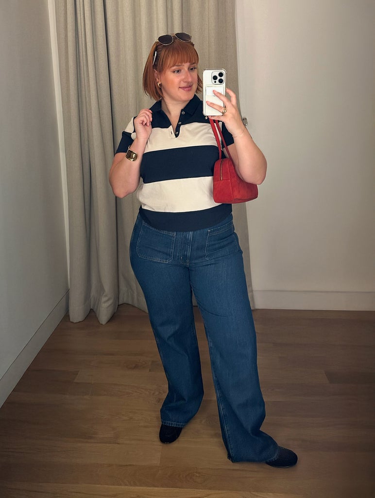 Madewell’s denim game remains unmatched, and the new Cleo Straight Jean style is top tier. From the retro front-pocket detail to the true-blue wash that gives ‘70s nautical energy, these are a style I’ll for sure be wearing on repeat. While the full-length silhouette was too long for my 5’3” frame, the brand offers petite jeans online that are ideal for me, with the petite Curvy jeans being my ultimate pick. They cinch my waist without back gapping and hit at my ankles (praise!), looking just as good with a casual cardigan as they do with a blouse for all the fall activities, from pumpkin picking to brewery hopping.