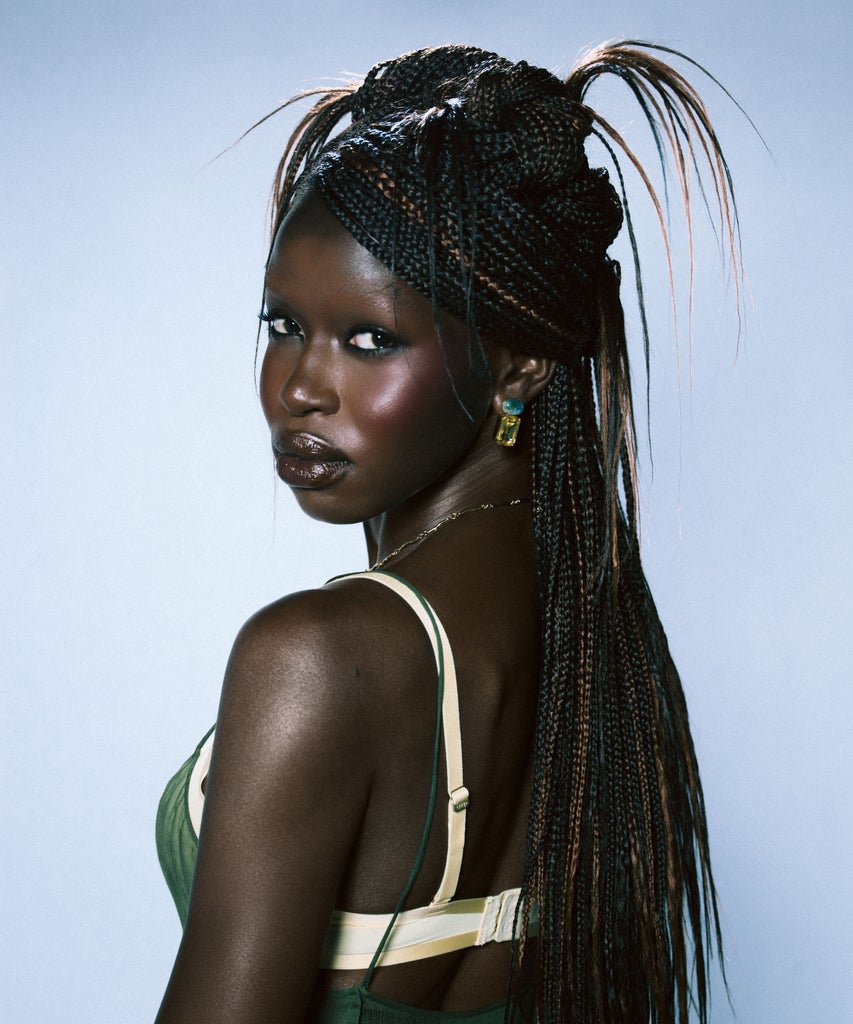 Whether you’re going for effortless style or all-out glamour, the right braided style can really elevate your look. “Oftentimes braids aren’t referenced for eveningwear or something more formal,” Moreno says of this half-up, half-down creation. “It was really important for me to show the variation and the range that braids actually have.” Achieve this piece-y, aughts-inspired texture and volume by sectioning hair from ear to ear, then knotting and securing each bun atop the head, leaving length in the back. Add a finishing touch to your style with Bask and Lather Edge Control and Kevin Murphy Shimmer Shine spray for a healthy gleam.