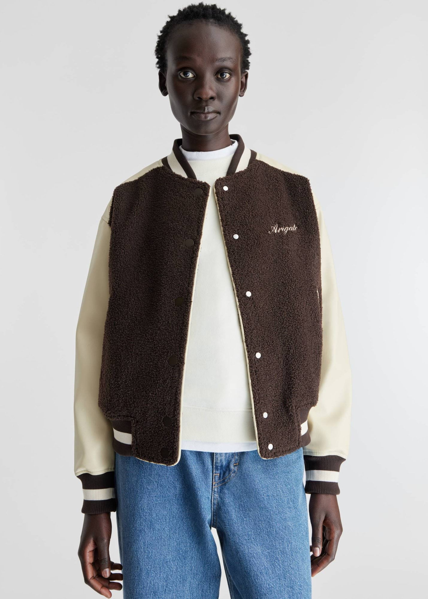 You don’t have to be a high school hero to rock this chic varsity jacket from Scandi-brand Axel Arigato.