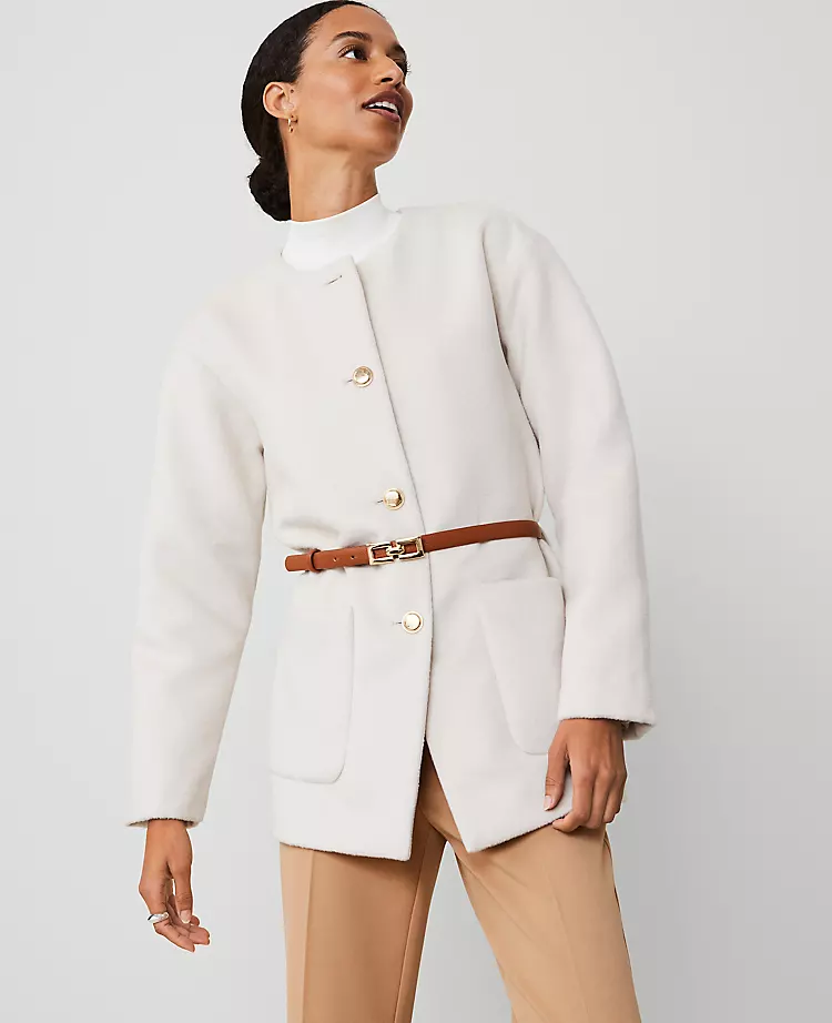 Ann Taylor Crew Neck Belted Coat, $, available at Ann Taylor