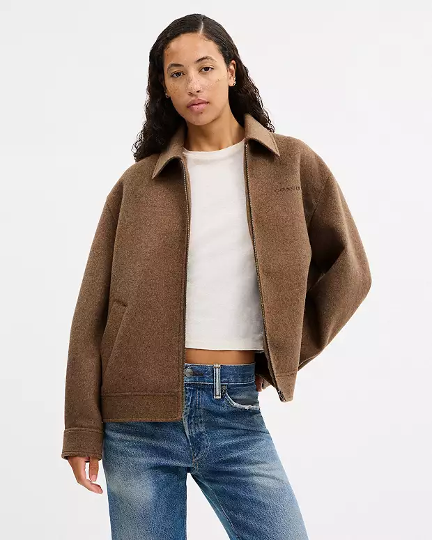 Coach Zip Front Wool Jacket, $, available at Coach Outlet