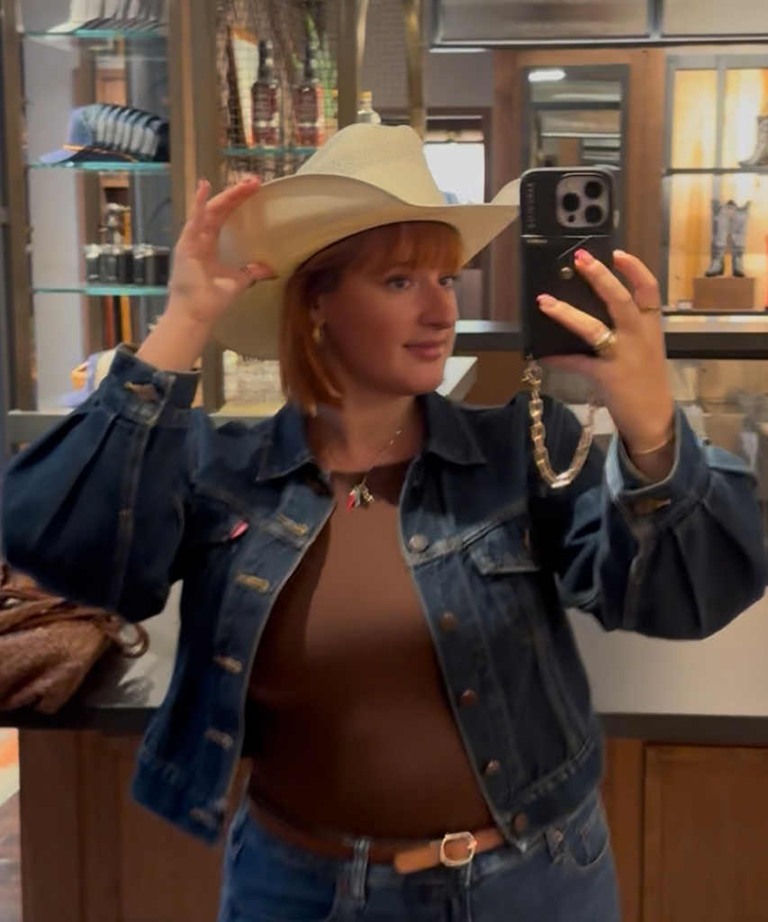 After exploring additional in-store amenities (including hat shaping and boot cleaning), I tried new styles across the brand’s boots, hats, and bags. But Tecovas isn’t just in the accessories game; Tecovas’ new fall styles include everything from cozy cardigans and kitschy graphic tees to vintage-inspired jeans.