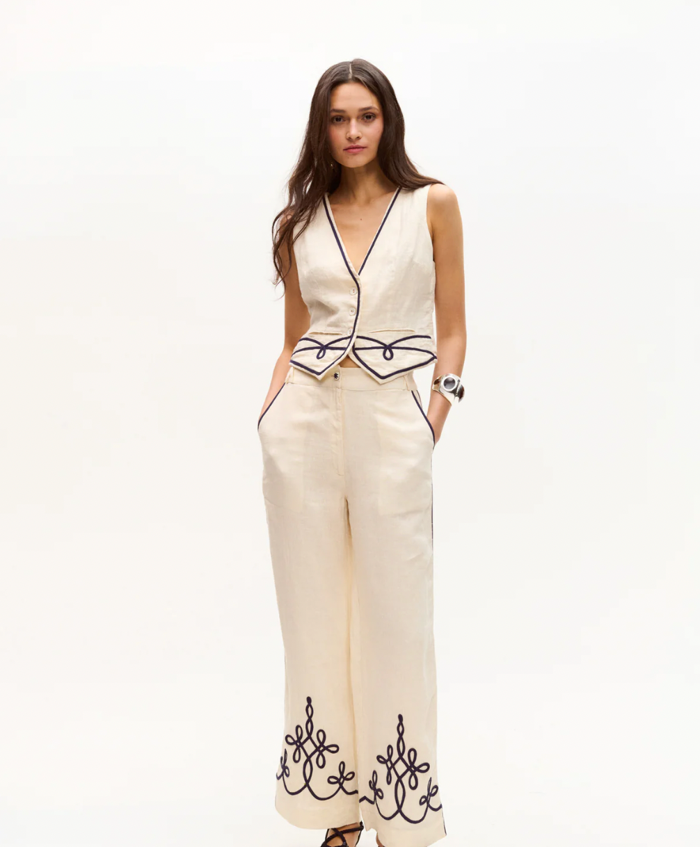 This gorgeous navy linen mini skirt offers sweeping movement and elegant structure, balancing a clean silhouette with artisan-inspired detail. Pair it with a simple top and let the craftsmanship do the talking.