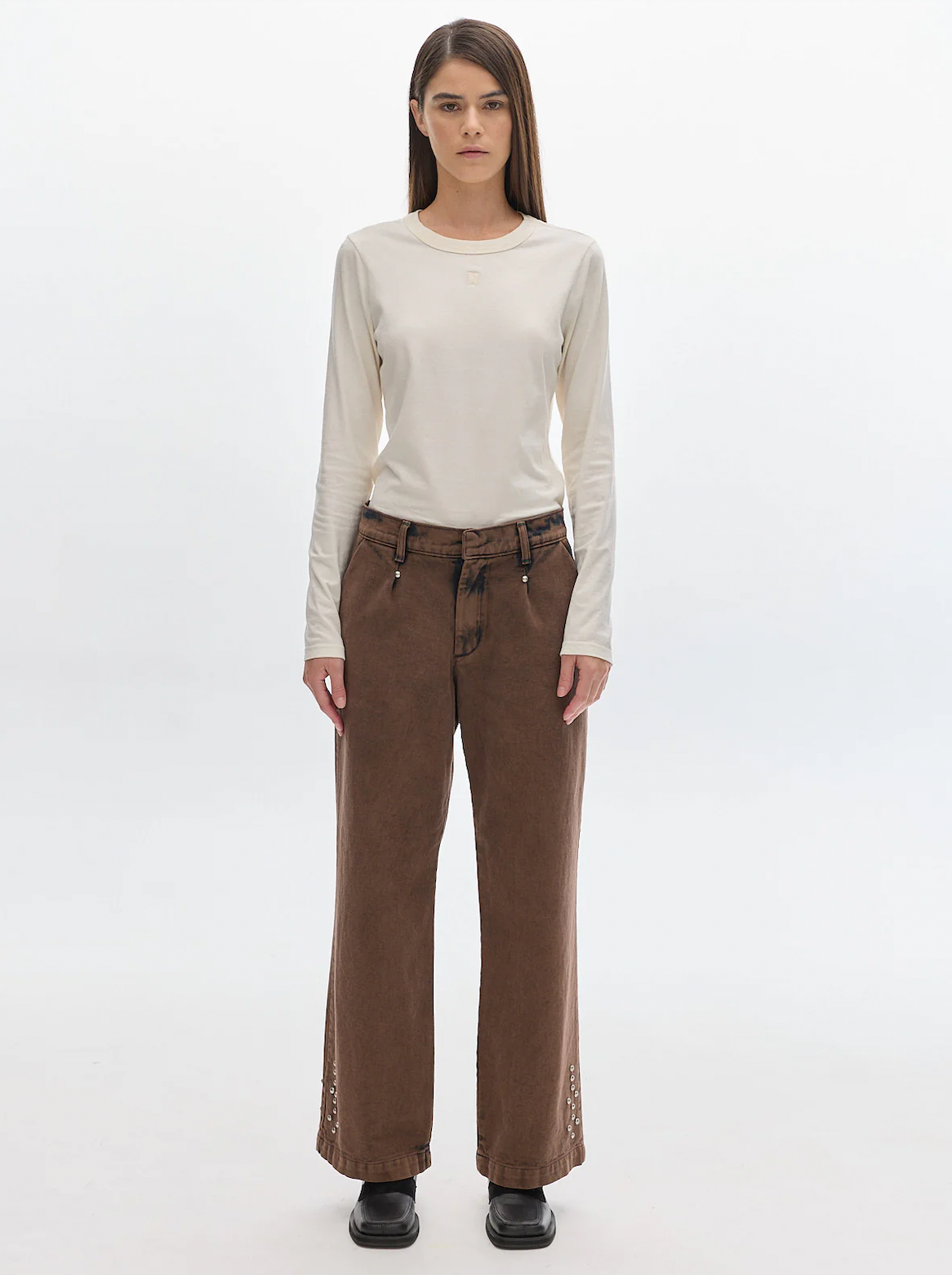 The cooler months are for cozy wear, and the wide-leg, pleated Sastre Jean provides all the comfort and ease you’ll need. Made from 100% cotton, these vintage washed brown tone pants feel both rugged and refined.