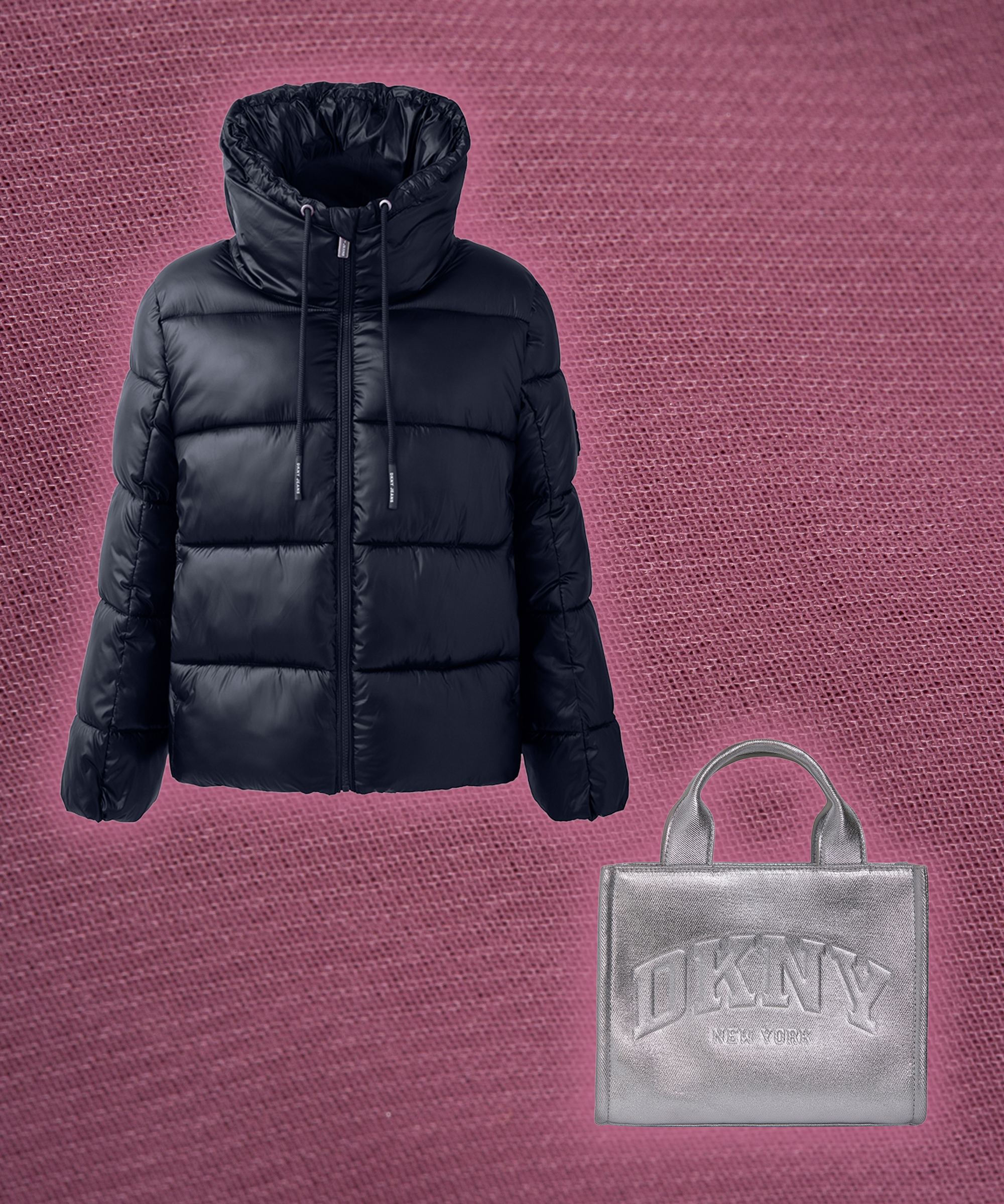 She’s the friend who always makes leggings look intentional. This glossy puffer nails the balance of form and function, while the metallic silver tote reflects her sporty-but-luxe sensibility — practical at heart, but with an eye for shine. Both pieces are wardrobe workhorses: the black puffer pairs with everything, and the tote transitions seamlessly from coffee runs to nights out.