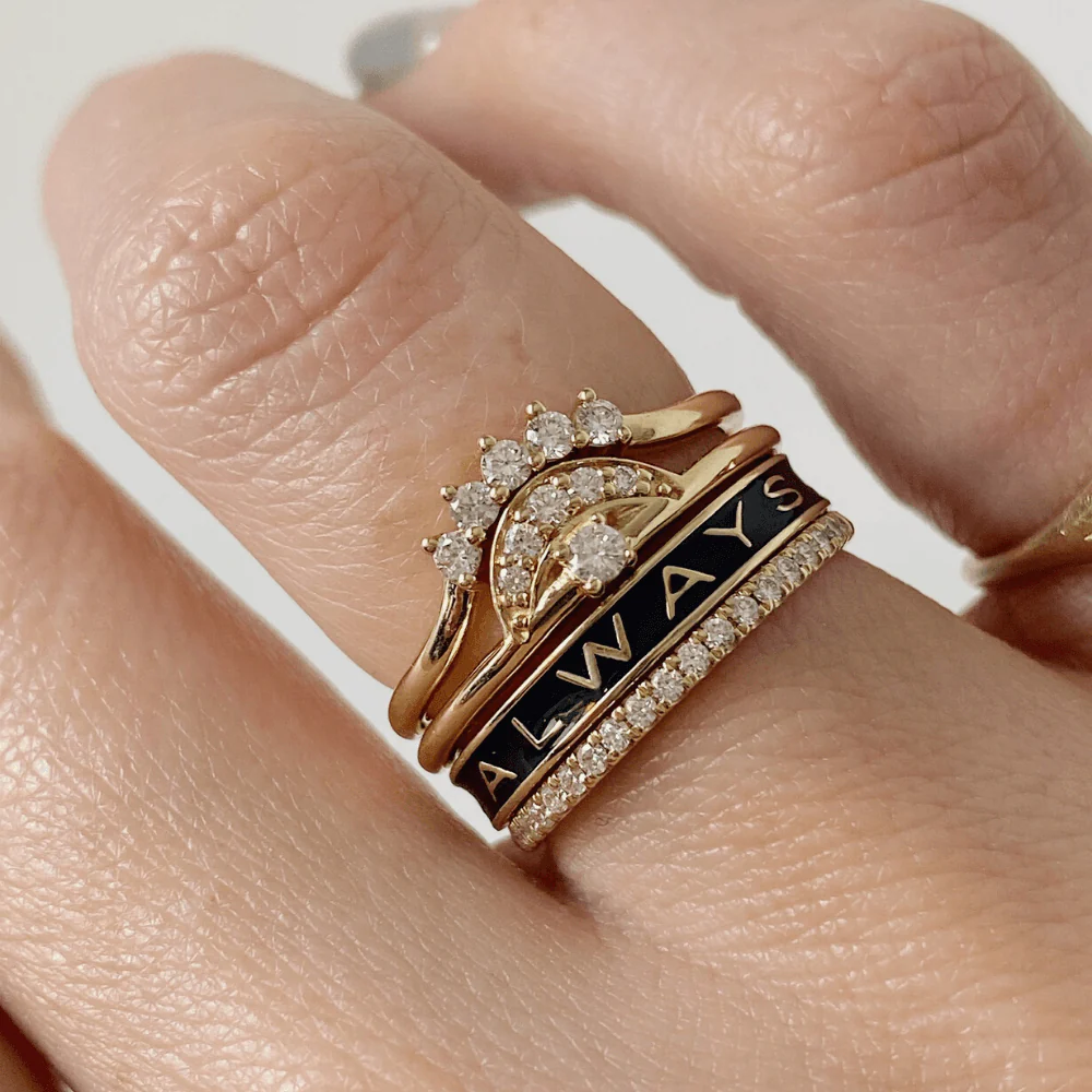 The brand behind the viral Til Death wedding bands, Marrow Fine, creates some of the most stunning untraditional ring styles. Currently, I have my eye on the Always enamel ring, a special piece for your significant other.