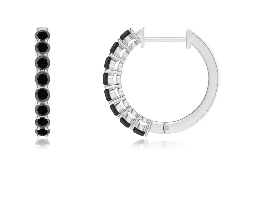 Angara Black Diamond Hinged Hoop Earrings