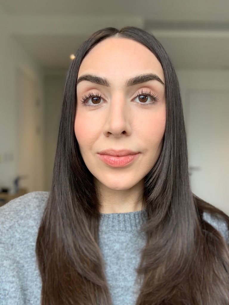 I use the Lash Curl Finisher just like mascara. First, I curl my lashes with my trusty Shiseido Eyelash Curler (an imperative step, according to The Ordinary), then I apply it in coats. But make no mistake: this isn’t like the clear mascaras of the ’00s that did nothing but make lashes feel rock hard. This actually makes them look thicker thanks to the lustrous sheen it leaves behind. It’s not quite a wet look, but it’s not invisible, either. If you touch your lashes, they feel slightly tacky before drying — and it’s this texture that keeps them upright, like your curled lashes are preserved (in a gentle way).