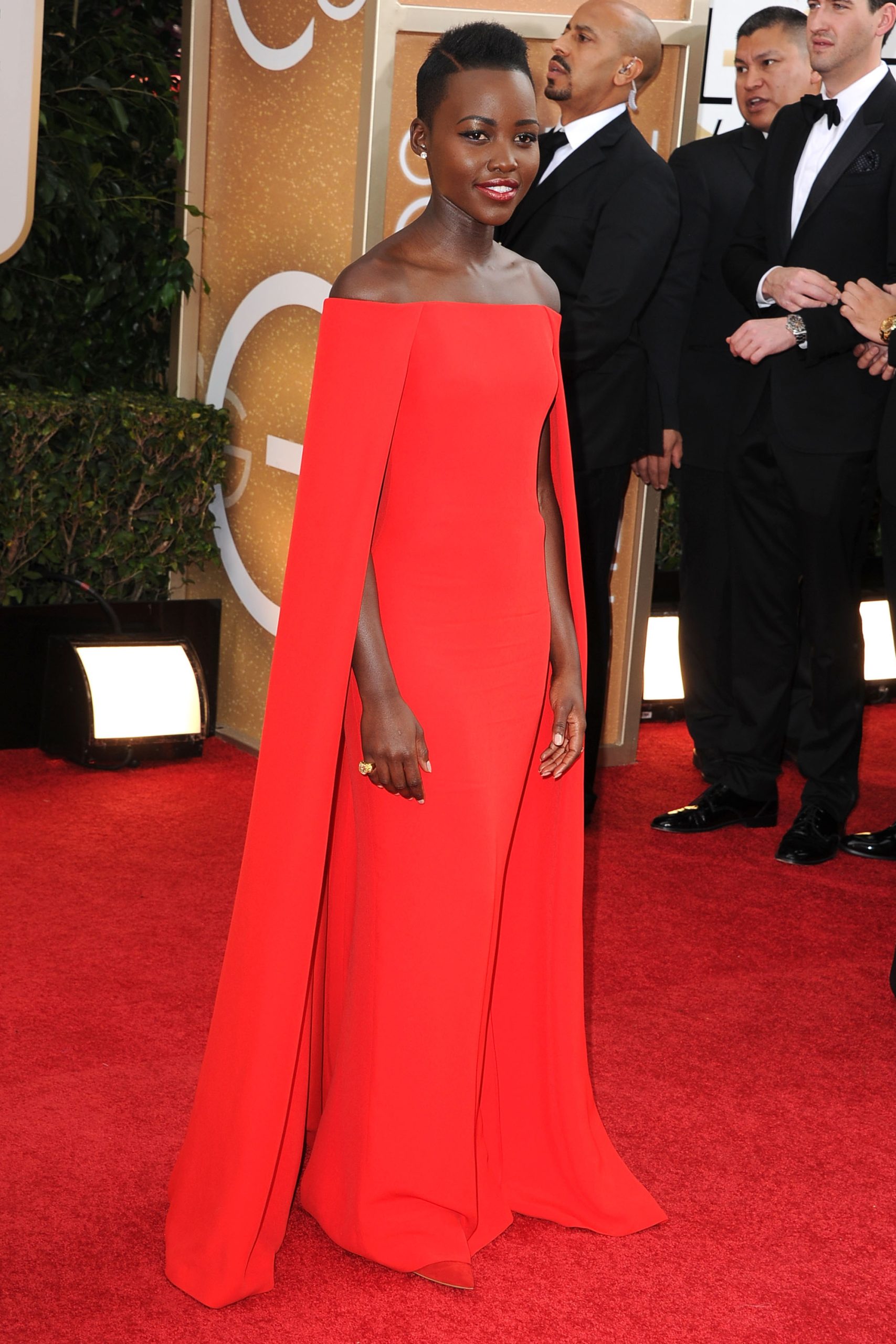 For a Golden Globes first-timer, Lupita Nyong’o walked this red carpet like a seasoned pro — or rather, a superhero, in this cape-like gown by Ralph Lauren.