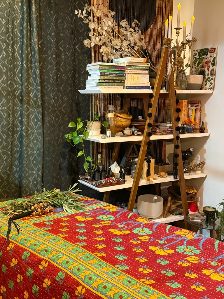 I spent the initial hours of my first night at Casa de Ritual, a wellness space and shop selling plant-based beauty and wellness products hand-mixed by owner and curanderista Yvonne Pérez Emerson. Drawing from her Indigenous Mexican and Scottish lineage, she also offers healing services including limpias, rebozo rituals, drum cleansing, and hapé ceremonies. After first holding me in a plática — a heart-to-heart conversation meant to better understand my emotional and spiritual state — I laid down on a bodywork table as she utilized prayer, sacred plants, cleansing smoke, breath, rhythm, and, at times, an egg to clear dense, stagnant energies and attachments throughout my body. The limpia, deeply emotional and beautifully insightful, eased the weight I had been carrying in my mind, body, and spirit, leaving me calm, open, and ready for the weekend ahead.