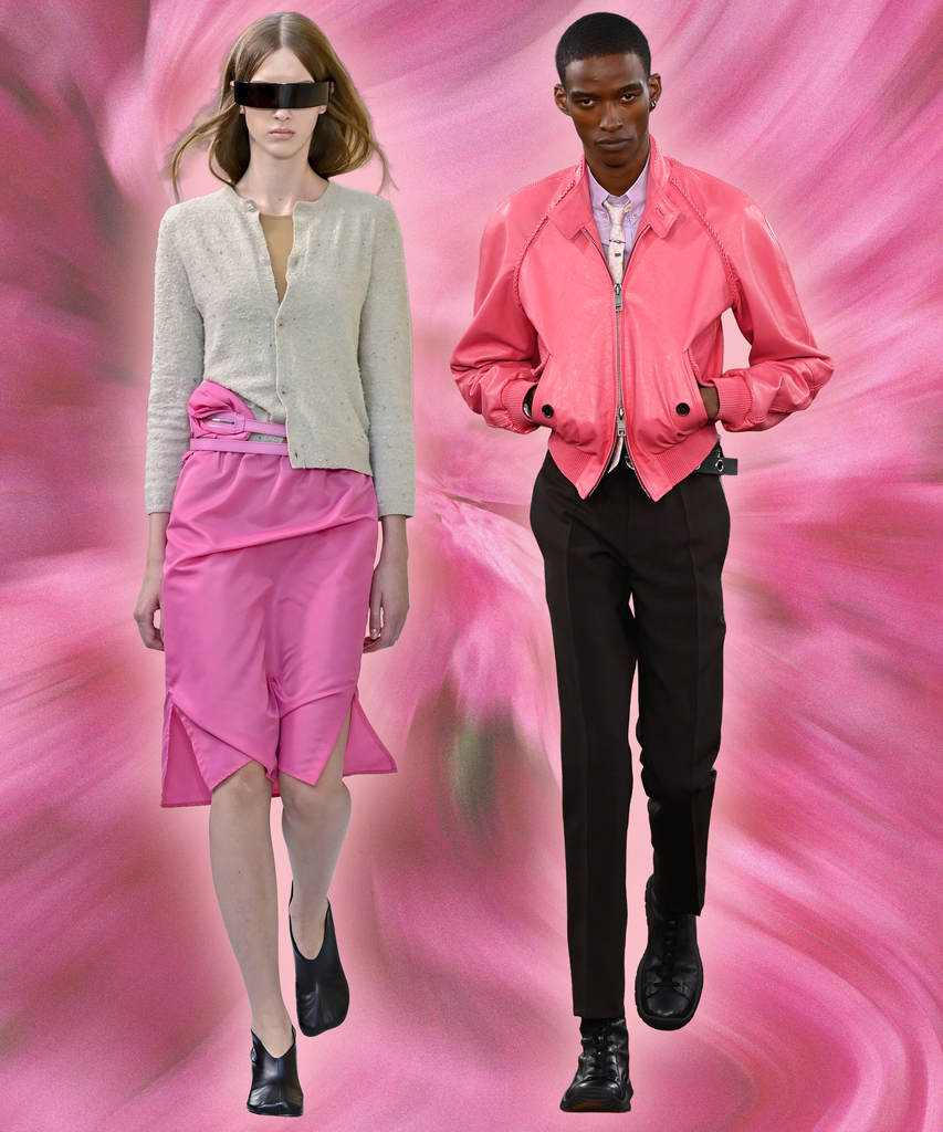 The industry’s penchant for pink is set to continue well into 2026. The bright magenta of shocking pink consistently popped up across the latest runway collections. MM6 Maison Margiela showcased head-to-toe pink looks, while Burberry offered ample style inspo by adding a neon pink scarf to an otherwise muted outfit. Bright tights underneath mini dresses and sheer skirts are another great option if you’re looking to (literally) dip your foot into the trend instead of jumping right in.