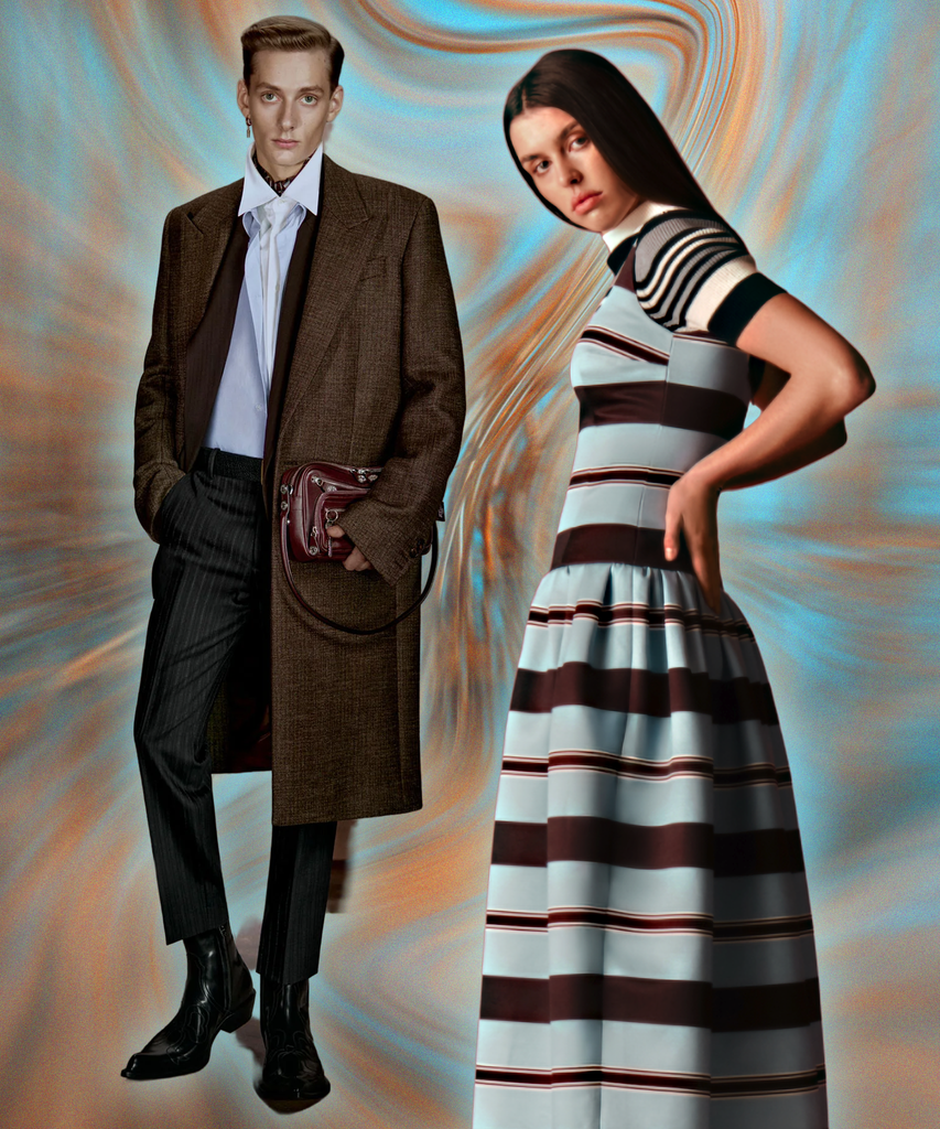 Mint chocolate chip, anyone? Repurpose the icy blue pieces you likely added to your closet in 2025 by pairing them with chocolate brown. If you’re looking for some cold-weather inspiration, turn to the team at Acne Studios, who layered a brown puffer coat with a light-blue shirt peeking out from underneath in their fall 2026 collection. Emilia Wickstead, meanwhile, offered up a host of sweaters in cheery stripes for a more nostalgic feel.