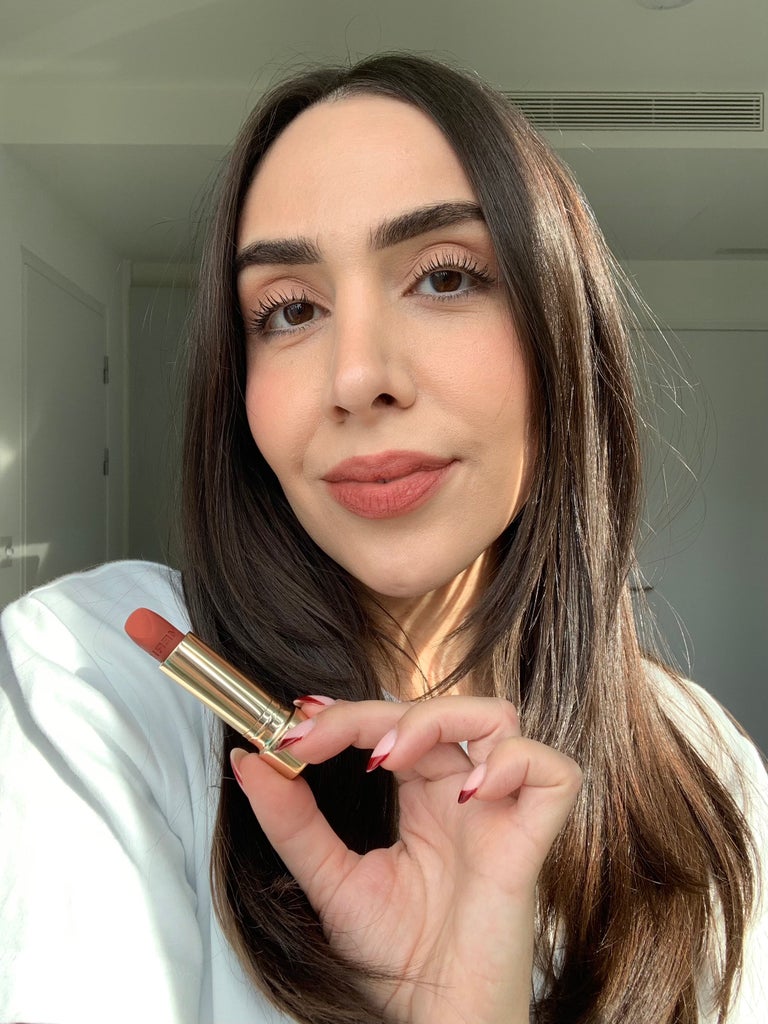 If you’re applying it a little more thoughtfully, it looks even better paired with a darker lip pencil and blurred ever so slightly over the lines, again lending that Nina Park effect. I love that the lipstick bullet boasts a squoval shape, which makes light work of tracing your lip line if you don’t have a lip pencil to hand.