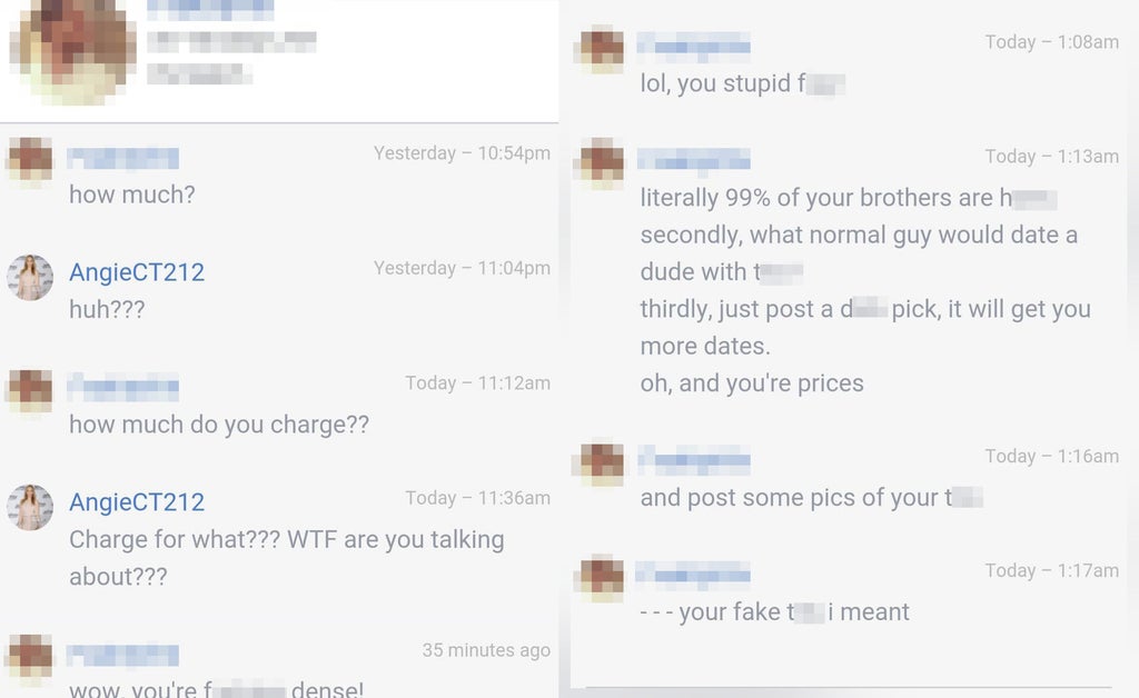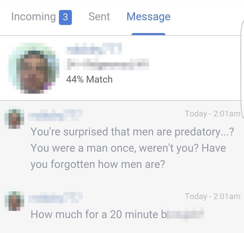 “I’ve received messages about lurid fantasies without my consent, and have been repeatedly dehumanized and denied intimacy, and told that my life does not matter if not for what my body can do to satisfy cis men’s desires.”