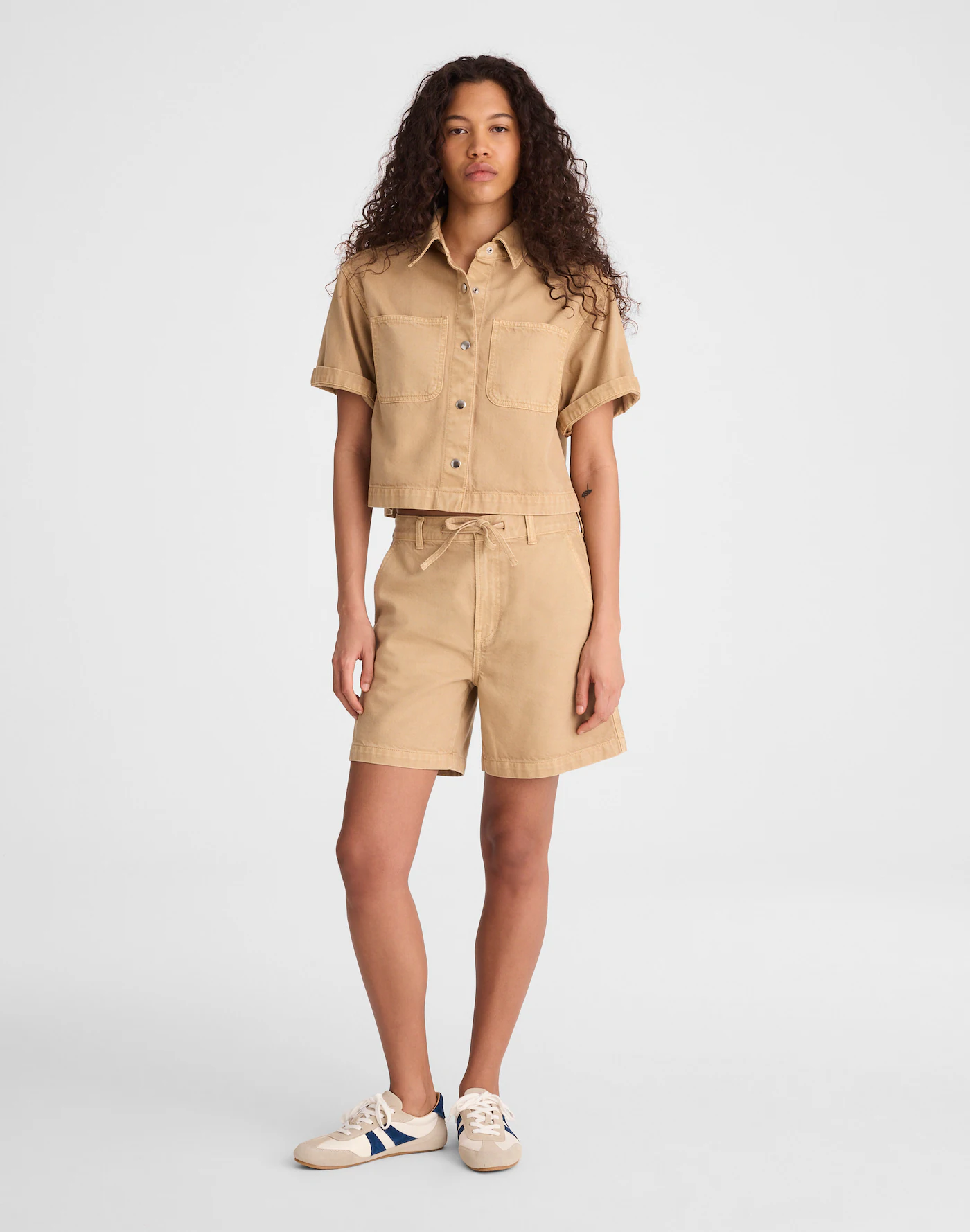 Airy Denim Boxy Crop Button-Up Shirt & Drawstring Short